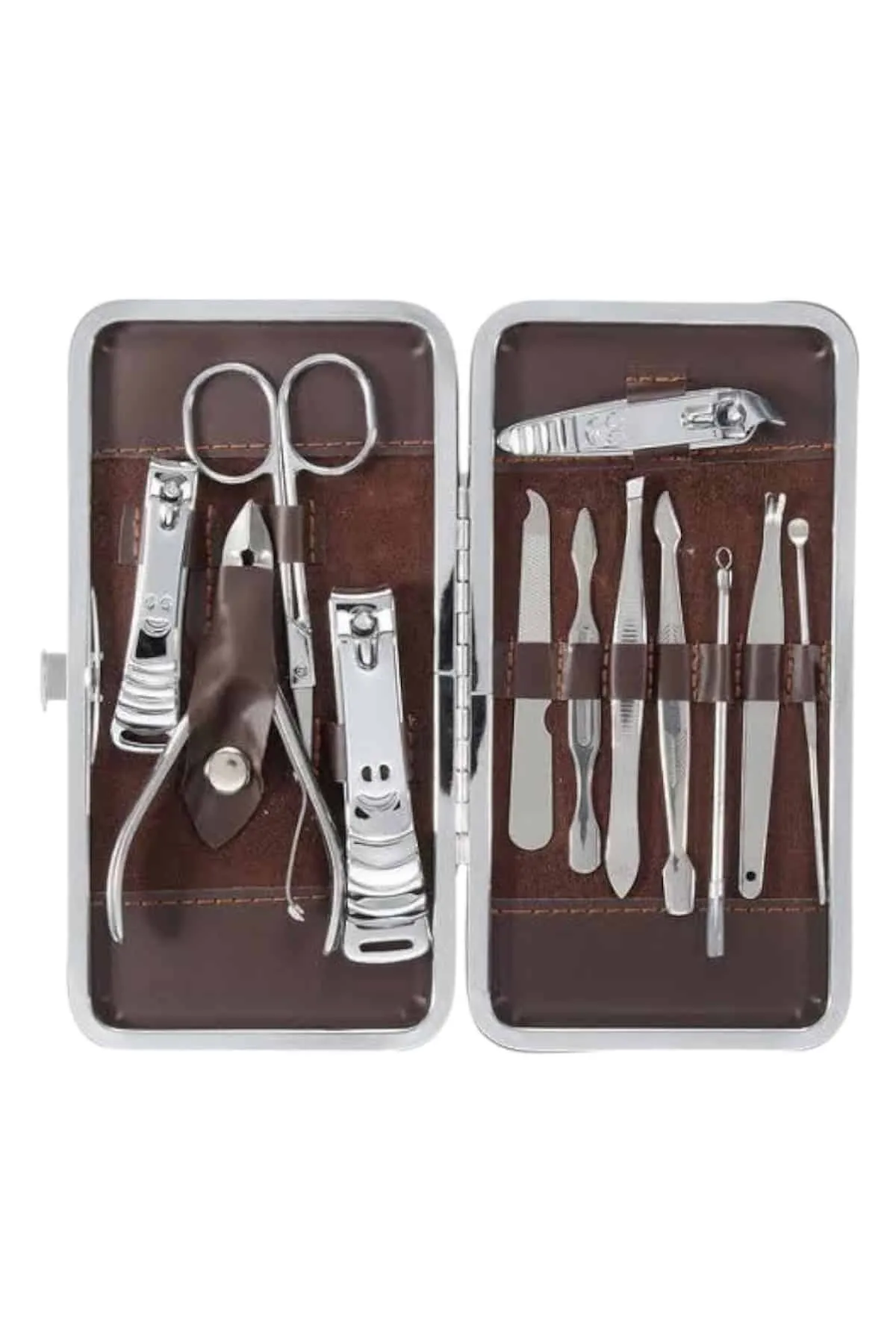 Özel deri çantalı bu hepsi bir arada bakım seti ile el ve ayak bakımınızı zahmetsizce yaparak kuaför masrafından kurtulabilirsiniz. Paslanmaz çelikten üretilmiş dayanıklı ve kaliteli aparatları sayesinde uzun ömürlü kullanım sunan bu set, taşınabilir boyutu ile çantanızda rahatlıkla taşınabilir ve seyahatlerinizde size eşlik eder. Setin içerisinde kulak çekme aparatı, çok amaçlı makas, manikür makası, üç farklı tırnak makası/düzeltici, pense, kir temizleme aparatı, kaş cımbızı, manikür bıçağı, tırnak törpüsü ve akne iğnesi bulunur. Şık ve kullanışlı deri çantasıyla düzenli bir şekilde saklanabilen bu set, hem günlük kullanım hem de hediye alternatifi olarak mükemmel bir seçenektir.