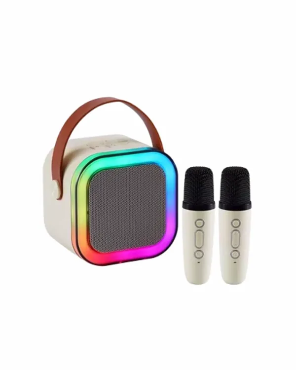 Bu taşınabilir kablosuz karaoke hoparlör, yüksek performanslı ses teknolojisi ile üstün ses kalitesi sunar. Gelişmiş ses sürücüleri ve tuning çipi sayesinde, müzik ve vokaller bozulmadan, net ve güçlü şekilde iletilir. Yüksek hassasiyetli hoparlörler, hem bas hem de tiz frekanslarda dengeli ve kaliteli ses çıkışı sağlar. Böylece ister ev ortamında ister açık havada, her türlü etkinlikte profesyonel ses deneyimi yaşamanıza olanak tanır.Bluetooth 5.0 teknolojisi ile donatılmış olan cihaz, 10-12 metreye kadar stabil ve hızlı kablosuz bağlantı sunar. Akıllı telefon, tablet, dizüstü bilgisayar veya akıllı televizyon gibi pek çok farklı cihazla kolayca eşleşir. Ayrıca USB ve AUX girişleri sayesinde farklı medya kaynaklarından da müzik çalabilme imkanı sağlar. Bu çoklu bağlantı seçenekleri, kullanıcının tercihine göre esnek kullanım sunar ve her ortamda kesintisiz eğlenceyi garanti eder.Cihazla birlikte iki adet kablosuz mikrofon sunulur. Mikrofonlardan biri, 5 farklı ses efekti seçeneği ile şarkı performansına farklı bir boyut katar. Bu özellik özellikle çocuklar ve gençler tarafından oldukça beğenilirken, yetişkinler için de çeşitli eğlenceli aktivitelerde kullanışlıdır. Mikrofonlar, ses girişinde netlik sağlamak ve geri bildirim oluşumunu engellemek üzere optimize edilmiştir.Üst panelde bulunan çok renkli LED ışık sistemi, müziğin temposu ile senkronize olarak yanar ve ortamda dinamik bir atmosfer yaratır. Bu görsel efektler, özellikle parti, kutlama ve çocuk etkinliklerinde eğlenceyi artırır. İstenildiğinde LED ışıklar kapatılabilir ve daha sade bir kullanım sağlanabilir.2400 mAh kapasiteli lityum iyon batarya, tek şarjla 6 ila 10 saat arasında kesintisiz müzik dinleme ve mikrofon kullanımı imkanı sunar. Type-C şarj girişi sayesinde hızlı ve güvenilir şarj işlemi gerçekleştirilebilir. Cihaz, şarj sırasında da kullanılabilir; böylece uzun süren etkinliklerde güç kesintisi yaşanmaz.Ergonomik ve kompakt tasarımı, cihazın kolay taşınmasını sağlar. Üzerindeki taşıma sapı, kullanıcıya ekstra pratiklik sunar. Hafif yapısı sayesinde, plajda, piknikte, doğum günü partilerinde veya açık hava etkinliklerinde rahatlıkla yanınızda taşıyabilirsiniz.Bu ürün, hem eğlence hem de profesyonel kullanıma uygun özellikleriyle geniş bir kullanıcı kitlesine hitap eder. Çocuklar, gençler, aileler ve profesyonel sunum yapan kişiler için ideal bir çözümdür. Aynı zamanda özel günlerde hediye olarak tercih edilmek üzere tasarlanmıştır.