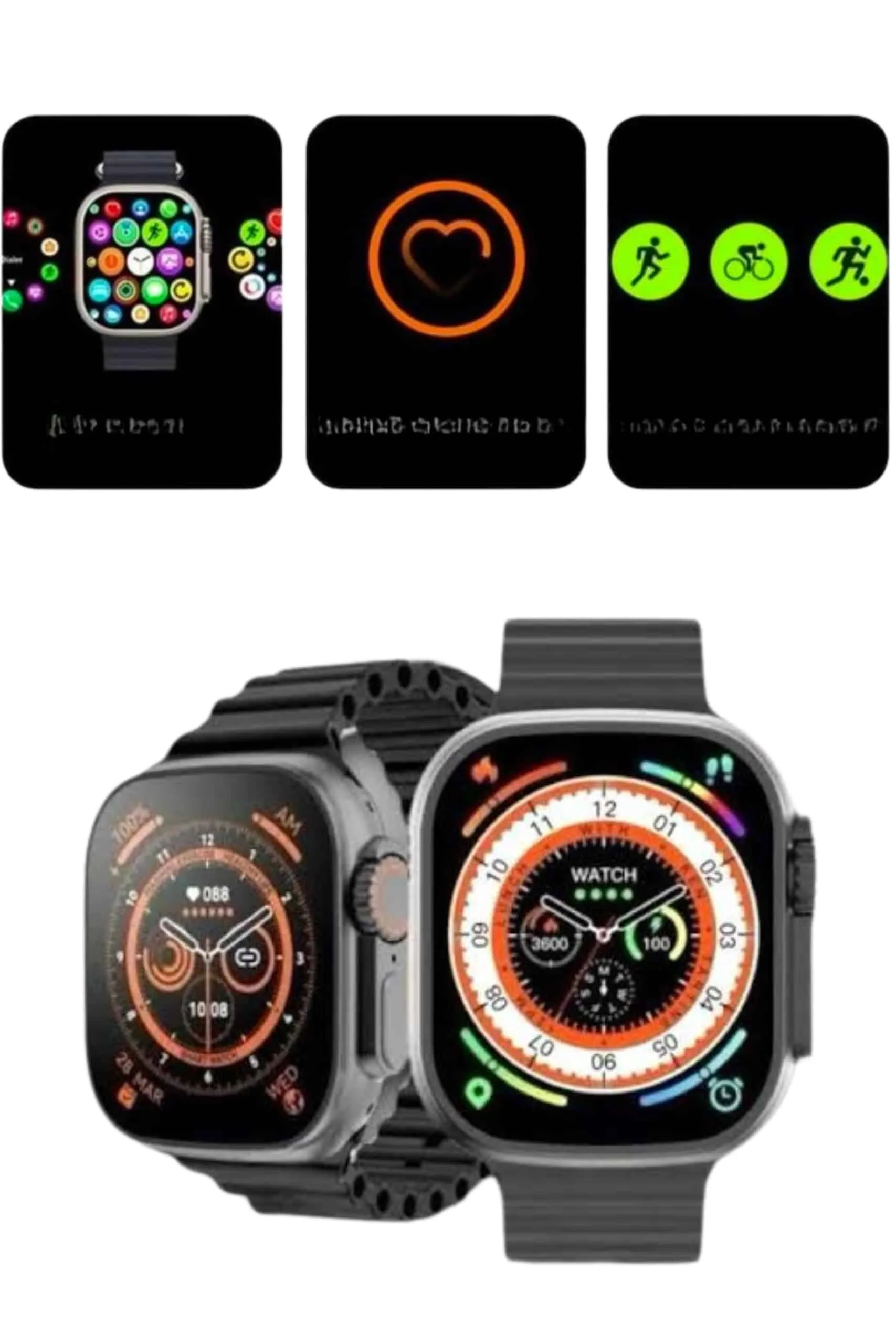 Sağlık takibi konusunda gelişmiş özelliklere sahip olan bu cihaz, nabız sensörü ile kalp atış hızınızı sürekli olarak izleyerek sağlık durumunuzu kontrol etmenize yardımcı olur. Uyku takibi özelliği, uyku düzeninizi analiz eder ve daha sağlıklı bir uyku için önerilerde bulunur. Suya ve toza dayanıklılığı, her türlü ortamda güvenle kullanım imkanı sunarak günlük aktivitelerinizde endişe duymadan saatinizi kullanmanıza olanak tanır.