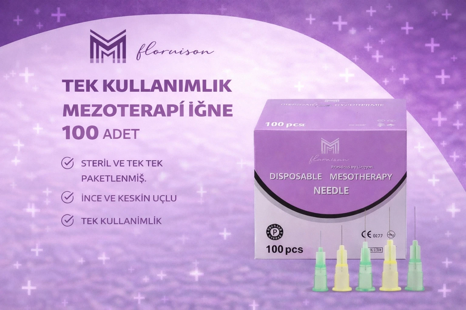 32G X 6MM Mezoterapi İğne Ucu Steril Enjeksiyon İğnesi 100 Adet 1 Kutu
