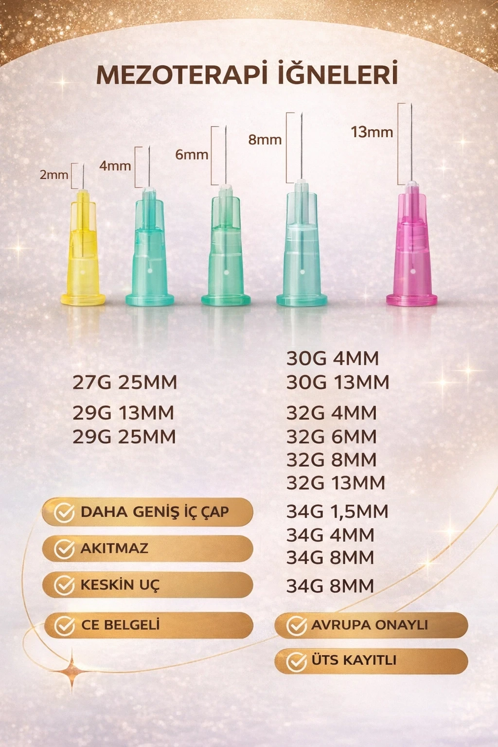 32G X 8MM Mezoterapi İğne Ucu Steril Enjeksiyon İğnesi 100 Adet 1 Kutu