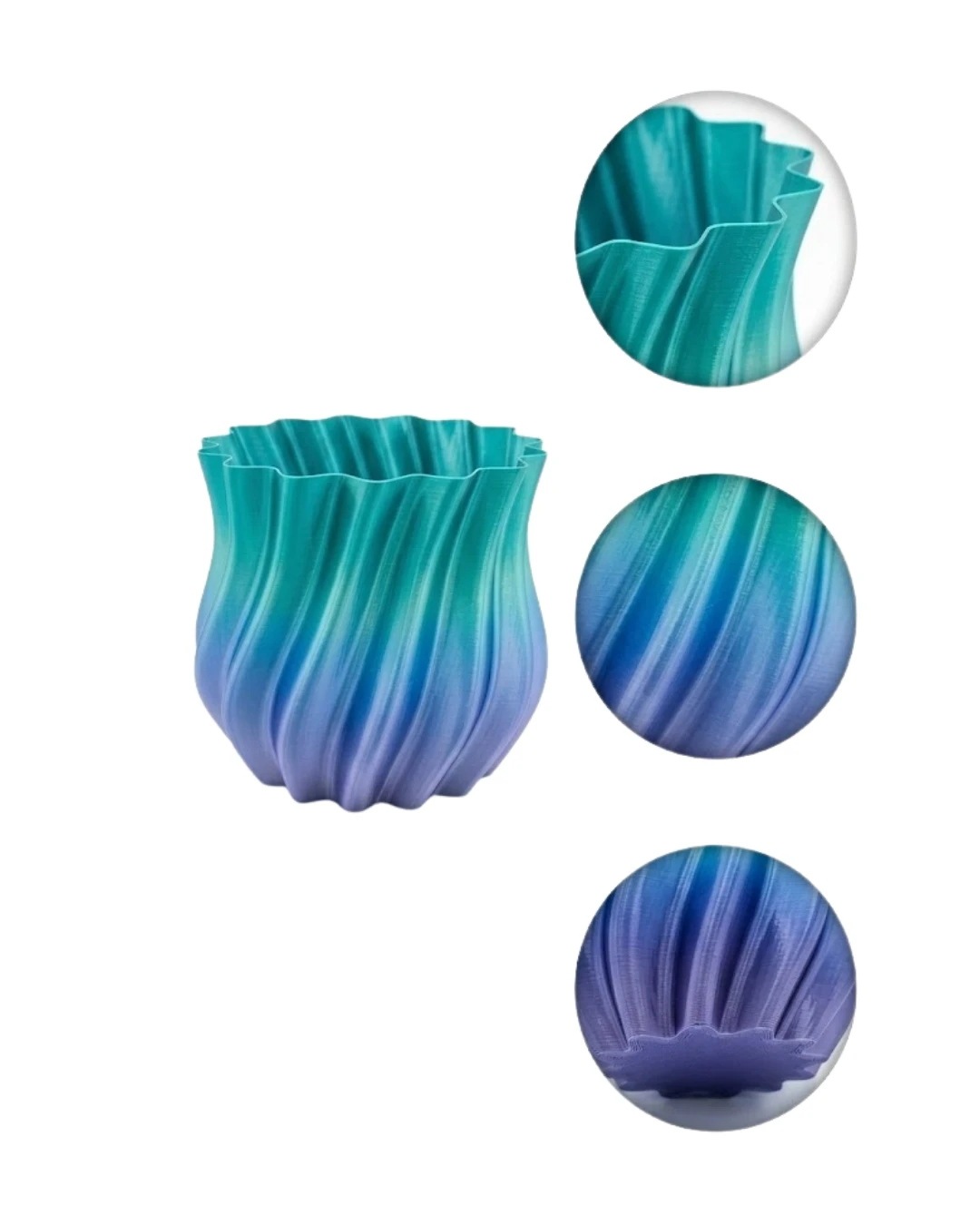 Estetik ve modern tasarımı bir araya getiren 3D kıvrımlı mavi vazo, yaşam alanlarına şıklık ve karakter katmak isteyenler için özel olarak tasarlanmıştır. Akışkan ve dalgalı formu sayesinde bulunduğu ortamda dikkat çekici bir odak noktası oluşturur. Mavi tonlarının huzur veren etkisi, özellikle sade dekorasyonlarda güçlü bir tamamlayıcı rol üstlenir. Kompakt yapısı sayesinde evin birçok farklı alanında kullanılabilir. Salon, yatak odası, çalışma alanı veya ofis dekorasyonunda rahatlıkla yer alır. Hafif yapısı sayesinde kolay taşınabilir ve farklı dekorasyon düzenlerine uyum sağlar. Ürünün kaliteli üretim yapısı, uzun süreli kullanım imkanı sunar. Kıvrımlı yüzey tasarımı, ışıkla etkileşime girerek görsel olarak zengin bir görünüm oluşturur. Bu sayede bulunduğu ortamda sıradanlıktan uzak, estetik bir atmosfer yaratır. Bu vazo yalnızca fonksiyonel bir ürün değil, aynı zamanda dekoratif bir sanat objesidir. Tek başına kullanıldığında bile bulunduğu ortamda şık bir görünüm oluşturur. Kurutulmuş çiçekler, dekoratif dallar veya yapay bitkiler ile birlikte kullanılarak farklı dekorasyon stillerine uyarlanabilir. Hem kişisel kullanım hem de hediye seçeneği olarak değerlendirilebilecek bu ürün, modern dekorasyon severler için vazgeçilmez bir parçadır.