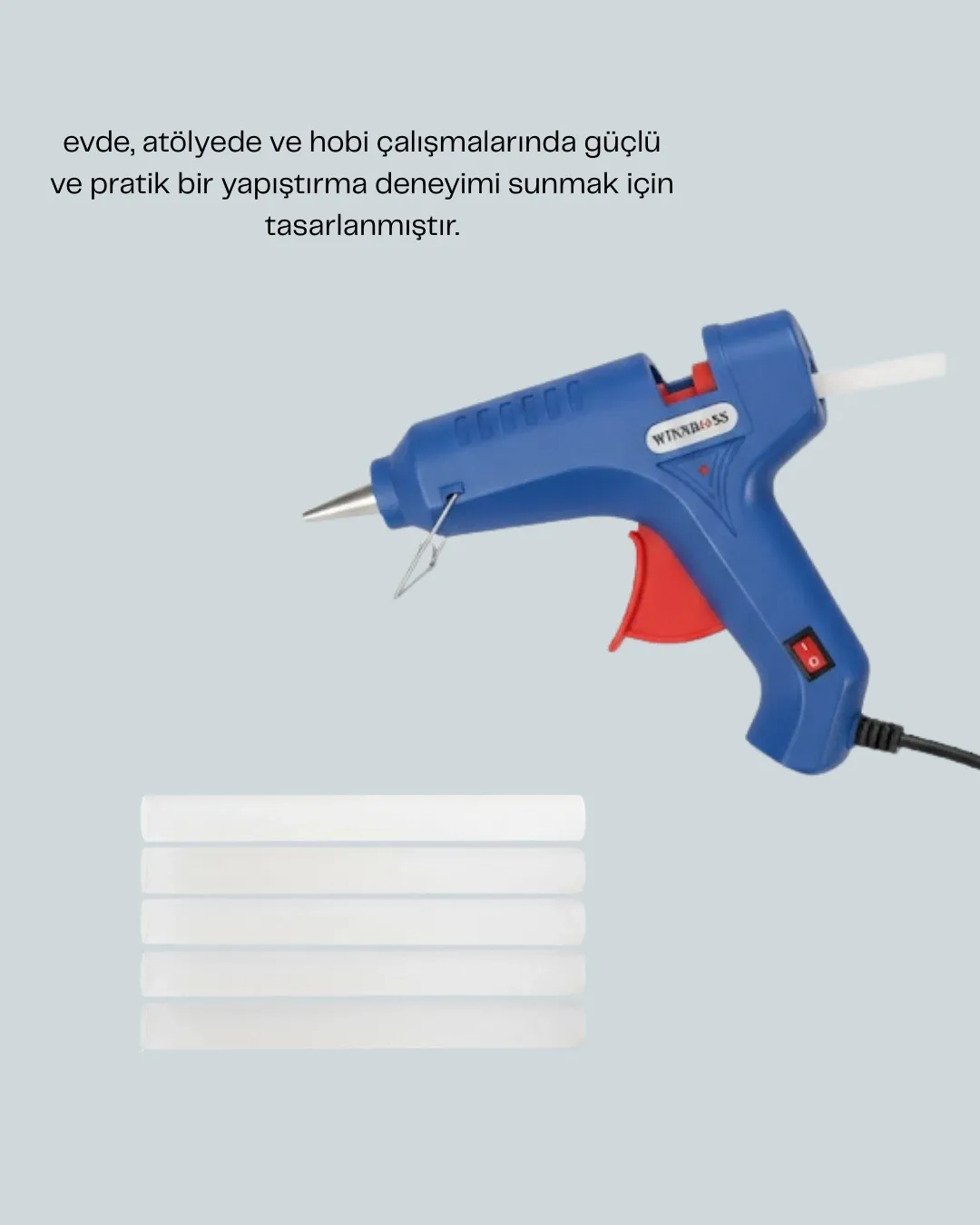 5 silikon hediyeli 40W sıcak silikon tabancası, ev ve hobi kullanımında vazgeçilmez bir yardımcıdır. Güçlü 40W motoru sayesinde silikon çubukları hızlıca eriterek zaman kazandırır. Paket içeriğinde yer alan 5 adet silikon, ürünü kullanıma hazır hale getirir. Ergonomik tasarımı sayesinde rahat kavrama sağlar ve uzun süreli çalışmalarda bile konfor sunar. Tetik mekanizması, silikon akışını dengeli biçimde ayarlamanıza yardımcı olur. Metal uç yapısı, düzgün ve temiz yapıştırmalar elde etmenizi sağlar. Sıcak silikon tabancası; tamirat, süsleme, el işi ve hobi projelerinde geniş kullanım alanına sahiptir. Çeşitli yüzeylerle uyumlu yapısı sayesinde çok yönlü kullanım imkânı sunar. Ev ortamında güvenle kullanılabilir. Isıya dayanıklı dış kasa, güvenli kullanım sağlar. Açma kapama düğmesi ile kontrol tamamen kullanıcıya aittir. Kompakt yapısı sayesinde kolay taşınır ve saklanır. 5 silikon hediyeli bu sıcak silikon tabancası, pratikliği ve kullanım kolaylığı ile günlük işlerinizi zahmetsiz hale getirir.