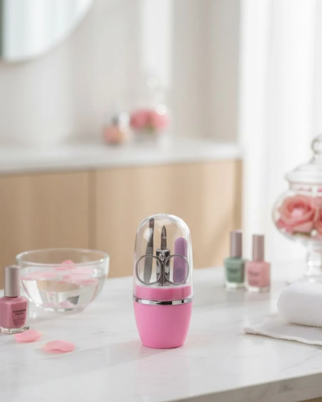 Şıklığı ve kullanışlılığı bir arada sunan Tırnak Bakım Manikür Pedikür Seti 4 Parça Pembe, sade tasarımıyla her yaş grubuna hitap eder. Kapsül formu sayesinde hem koruyucu hem de taşıması kolay bir yapı sunar. Set içeriğinde bulunan tırnak makası, manikür pedikür makası, cımbız ve törpü; günlük bakım ihtiyaçlarını eksiksiz şekilde karşılar. Metal yüzeyler sağlam yapısıyla dikkat çekerken, pembe detaylar ürüne estetik bir hava katar. Hediye alternatifi olarak da tercih edilebilecek bu ürün, kişisel bakımına önem verenler için ideal bir seçenektir. Düzenli, pratik ve şık bir manikür pedikür seti arayanlar için doğru bir tercihtir.