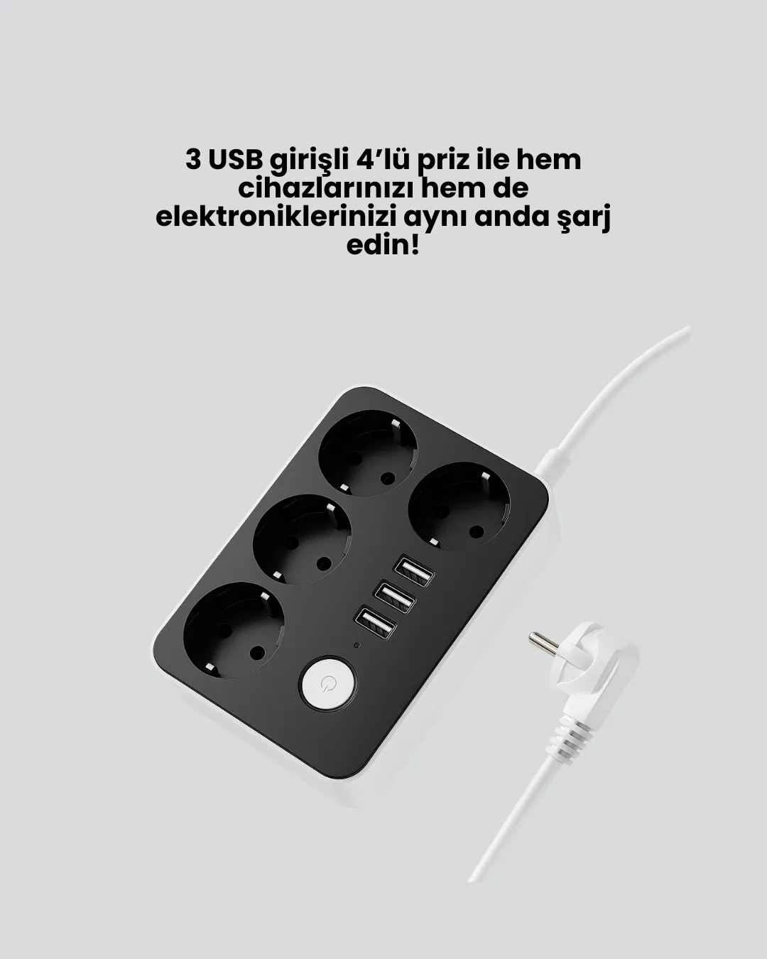 Tek bir prizle hem güvenliği hem de hızlı şarjı bir araya getiren bu ürün, 4 adet priz ve 3 USB portu sayesinde aynı anda 7 cihazınızı çalıştırabilmenize olanak tanır. 4.1A hızlı şarj özelliği, telefon ve tabletlerinizi kısa sürede şarj etmenizi sağlar. Akım koruma teknolojisi ile cihazlarınızı yüksek voltaj ve elektrik dalgalanmalarına karşı güvenle kullanabilirsiniz. 2 metre kablo uzunluğu, kullanım alanında size esneklik sunar. 2500W güce kadar destek sağlayan bu priz, yüksek performansı ile öne çıkar. Üzerinde yer alan açma-kapama anahtarı sayesinde kullanılmadığında enerjiyi kesebilir, güvenlik ve enerji tasarrufu sağlayabilirsiniz. Kompakt tasarımı sayesinde fazla yer kaplamaz, taşınabilir yapısı ile seyahatlerde de rahatlıkla kullanılabilir. Modern ve işlevsel tasarımı ile evinizin veya ofisinizin vazgeçilmez bir parçası olacak bu priz, günlük yaşamda güvenilir ve pratik bir çözüm sunar.