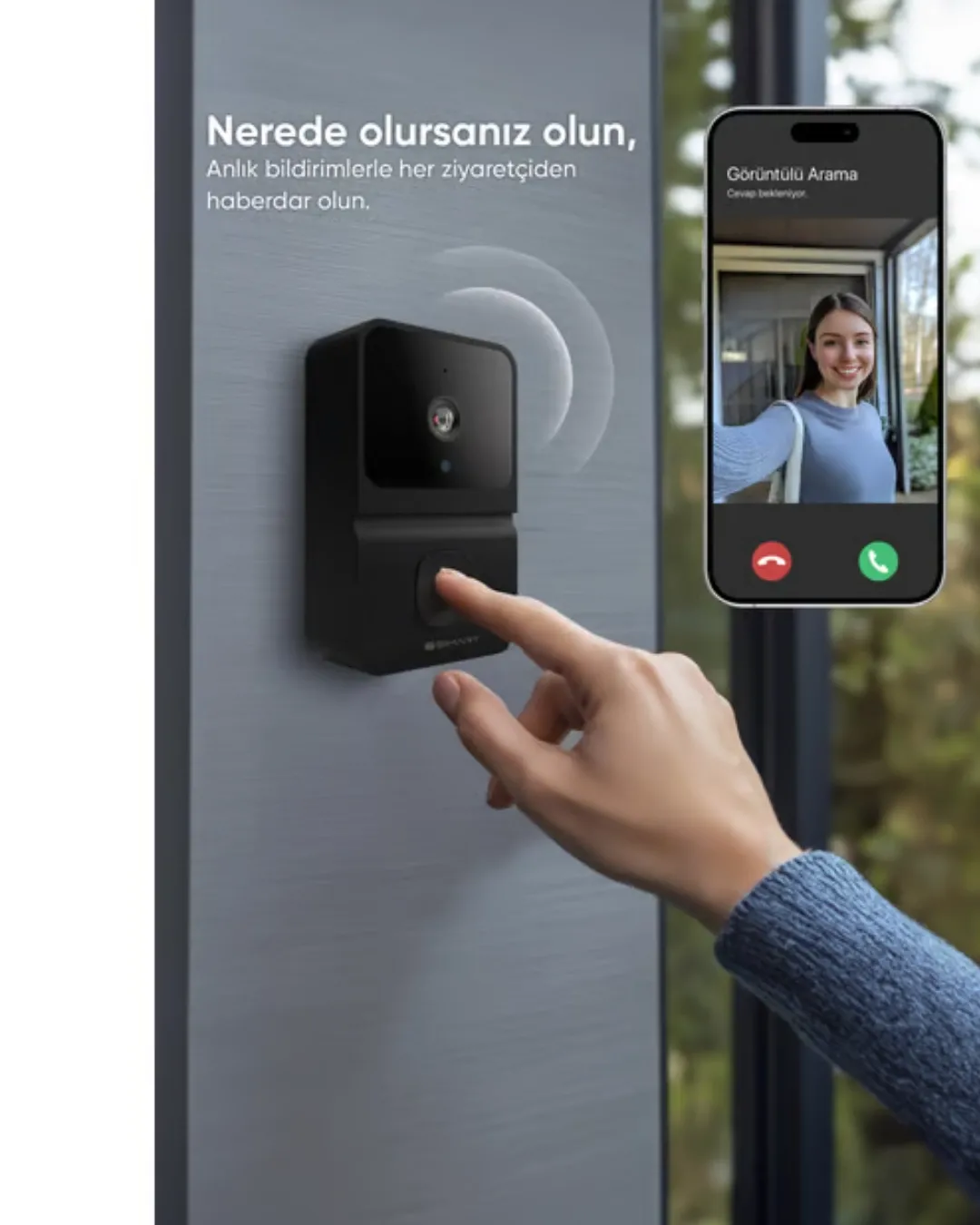 Akıllı kapı zili, ev ve ofis girişlerini daha güvenli, kontrollü ve konforlu hale getirmek için geliştirilmiş modern bir güvenlik çözümüdür. WiFi bağlantısı sayesinde kapınızın önünü dilediğiniz yerden canlı olarak izleyebilir, ziyaretçilerinizle çift yönlü ses özelliği üzerinden anında iletişim kurabilirsiniz. Günlük yaşam temposu içinde evde olmasanız bile kapınıza gelen kargo görevlisi, misafir veya tanımadığınız kişileri anlık olarak görüntüleyebilmek önemli bir avantaj sağlar. 85 derece geniş açılı lens, kapı önündeki alanı daha kapsamlı bir perspektifle gösterir. Bu sayede yalnızca kapının tam karşısını değil, çevresini de daha net şekilde takip edebilirsiniz. Gerçek zamanlı fotoğraf çekimi özelliği ile kapınıza gelen kişilerin görüntüsü kaydedilebilir ve gerektiğinde incelenebilir. Gece görüş fonksiyonu ise düşük ışık koşullarında bile net ve detaylı görüntü sunarak 7/24 güvenlik sağlar. Mobil uygulama desteği Android ve iOS platformlarıyla uyumludur. Kapı ziline basıldığında telefonunuza anlık bildirim gelir ve tek dokunuşla canlı yayına bağlanabilirsiniz. İki yönlü ses sistemi sayesinde kapı önündeki kişiyle karşılıklı konuşma yapılabilir. Bu özellik özellikle evde olmadığınız anlarda büyük kolaylık sağlar. 800 mAh şarj edilebilir batarya, uzun pil ömrü sunarak sık şarj ihtiyacını azaltır. Kablosuz tasarımı sayesinde hızlı ve kolay kurulum imkanı sağlar. Akıllı ev sistemleri ile entegre çalışarak daha gelişmiş güvenlik senaryoları oluşturmanıza yardımcı olur.