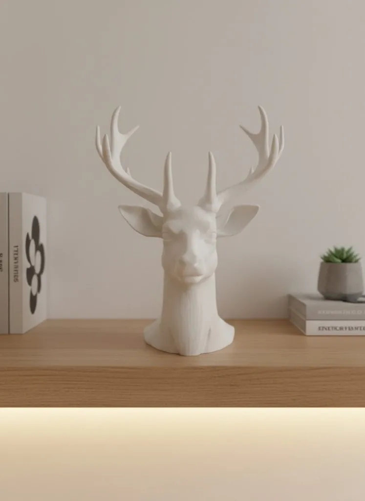 Minimal beyaz geyik biblo, sade tasarımı ve modern çizgileriyle dekorasyonunuzu tamamlayan şık bir aksesuardır. 23 cm yüksekliği sayesinde bulunduğu alanda dengeli ve estetik bir görünüm sunar. Beyaz rengi, her ortama uyum sağlayarak ferah ve temiz bir atmosfer oluşturur. Salon, yatak odası, çalışma alanı veya ofis dekorasyonunda rahatlıkla kullanılabilir. Raf ve masa üstlerinde dekoratif bir vurgu yaratır. Geyik figürü, doğayı ve zarafeti simgeleyen yapısıyla dekorasyona anlam katar. Özellikle modern ve İskandinav tarzda döşenmiş alanlarda öne çıkan bir detaydır. Mat yüzeyi sayesinde ışığı yumuşak bir şekilde yansıtır ve bulunduğu ortamda sade bir şıklık oluşturur. Tek başına sergilendiğinde güçlü bir dekoratif etki yaratırken, farklı objelerle birlikte kullanıldığında dekorasyonun bütünlüğünü destekler. Dayanıklı yapısı ile uzun süreli kullanım sunar. Hem kendi yaşam alanınızda kullanmak hem de sevdiklerinize şık bir hediye vermek için ideal bir dekoratif biblodur.