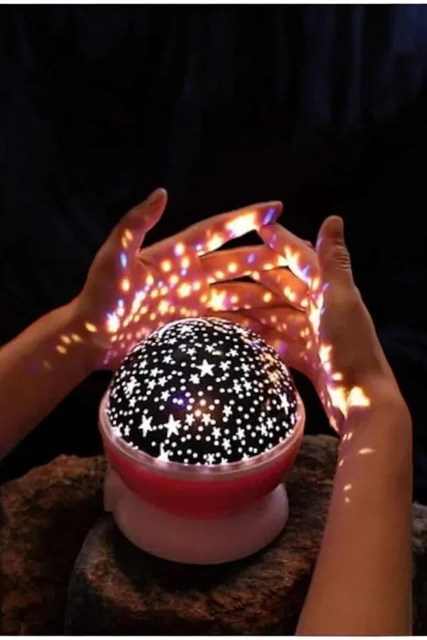 Yıldızlı Gökyüzü Projeksiyon Gece Lambası, her yaştan insan için muazzam bir görsel deneyim sunar. Mavi ve mor ışıklarla dönen yapısı, tavanınızda inanılmaz bir yıldızlar geçidi yaratır ve odanıza hareketli gezegenler, ay ve samanyolu gibi muazzam manzaralar yansıtarak adeta gökyüzünün büyüsünü evinize taşır. Özellikle çocuklar için mükemmel bir gece lambası karanlıktan korkan çocukların odasında rahatlıkla kullanılabilir ve onların uykuya geçişini daha huzurlu hale getirir. Şeffaf üst kapak sayesinde ışık doğrudan tavana yansıtılabilir veya farklı bir açıyla yönlendirilerek farklı bir atmosfer oluşturulabilir. Işık seviyesini ve rengini ayarlayarak odanızın ambiyansını istediğiniz şekilde şekillendirebilirsiniz. Ayrıca, gözleri rahatsız etmeyen tasarımı sayesinde uzun süreli kullanımlarda bile herhangi bir rahatsızlık yaratmaz. 4 adet AAA pil ile çalışan bu projeksiyon gece lambası, kolay taşınabilirlik sunar ve enerji verimliliği sağlar. Yıldızlar, gezegenler ve ayın büyüleyici ışıklarıyla odanızı aydınlatırken, hem görsel bir şov hem de rahatlatıcı bir atmosfer yaratır.