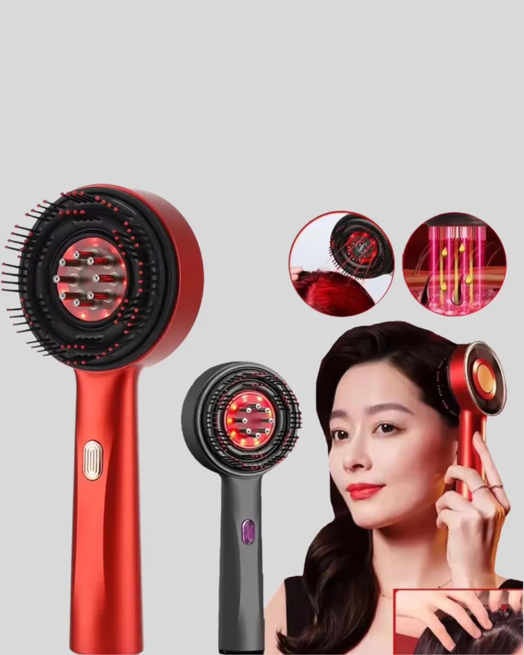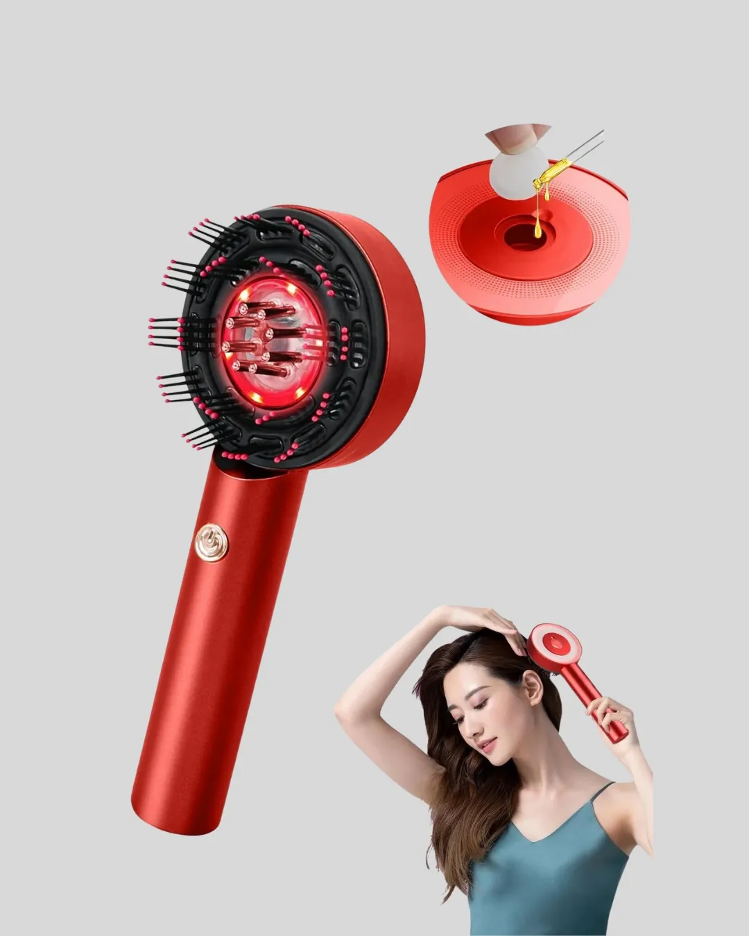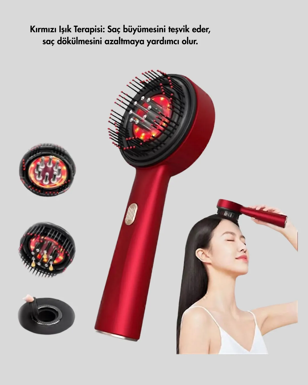 Elektrikli titreşim masaj tarak, saç derisi bakımını evde profesyonel seviyeye taşıyan yenilikçi bir saç bakım ürünüdür. Mikro akım teknolojisi sayesinde saç derisini nazikçe uyarır, kan dolaşımını artırır ve saç köklerinin güçlenmesine yardımcı olur. Düzenli kullanımda saç derisi sağlığını desteklerken, saç dökülmesini azaltmaya ve saçların daha güçlü uzamasına katkı sağlar. 630 nm kırmızı ışık terapi teknolojisi, saç köklerini hedef alarak saç büyüme sürecini destekler. Kırmızı LED ışık, saç derisindeki hücre yenilenmesini teşvik eder ve daha sağlıklı bir saç ortamı oluşturur. 72 yuvarlak uçlu masaj dişi, insan eliyle yapılan masaj hissini taklit ederek sinirleri yatıştırır ve rahatlatıcı bir etki sunar. Ürün üzerinde bulunan 6 ml kapasiteli sıvı haznesi ve 8 adet silindirli top sayesinde saç bakım yağları veya serumlar saç derisine eşit şekilde uygulanır. Bu tasarım, ürünlerin saç diplerine daha etkili ulaşmasını sağlar. Üç farklı masaj modu sayesinde kişisel ihtiyacınıza göre hafif, orta veya yoğun masaj seçeneği sunar. IPX7 su geçirmez yapısı sayesinde ıslak ve kuru saçta güvenle kullanılabilir. Type-C hızlı şarj özelliğine sahip 1400mAh bataryası ile uzun süreli kullanım imkanı sunar. Evde, seyahatte veya duş sırasında rahatlıkla tercih edilebilir.