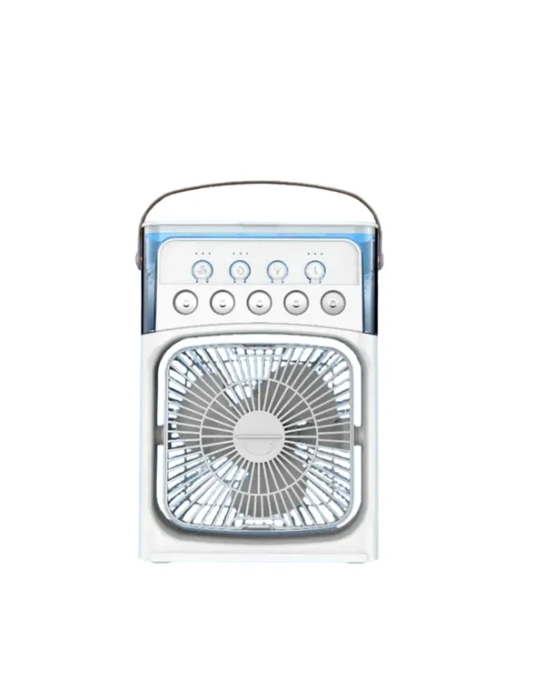 Fan, klima ve nemlendirici işlevlerini tek bir cihazda sunan bu çok fonksiyonlu masaüstü fan, hem pratik hem de şık bir çözüm sunar. Özellikle yaz aylarında sıcaklıkla baş etmekte zorlananlar için birebir. 5 delikli atomizer çıkışı sayesinde havayı homojen şekilde dağıtarak etkili bir soğutma sağlar. 3 farklı fan hızı ve 3 sprey seviyesi ile ihtiyaç duyduğunuz ayarı kolayca yapabilirsiniz. 500ML'lik geniş haznesi sayesinde içerisine buz ve su ekleyerek uzun süre serin kalabilirsiniz. USB ve Type-C bağlantısı sayesinde birçok cihazla uyumlu çalışır. Taşınabilir yapısıyla yaz tatillerinde, kamp alanlarında veya açık hava etkinliklerinde kolaylık sağlar. 7 renkli gece lambası fonksiyonu ile loş bir ışık sağlar ve ortama huzur katar. Düşük ses seviyesi sayesinde gece uykusunu bölmeden kullanılabilir. Enerji tasarrufu sağlayan motor yapısı, hem çevreyi hem cebinizi korur. Modern ve kompakt tasarımıyla her alanda kullanım için idealdir.
