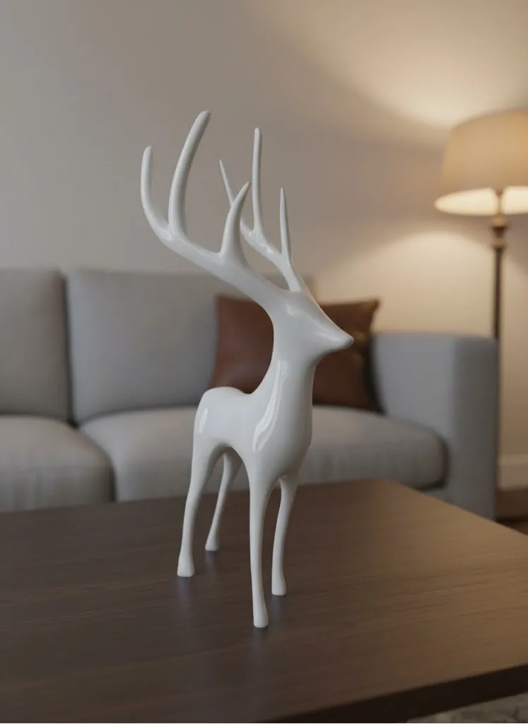 Geyik figürü, beyaz rengi ve modern tasarımıyla dekorasyona zarif bir karakter kazandırır. 12×24 cm ölçüsü, ürünü hem masa üstü hem de raf dekoru için kullanışlı hale getirir. Salon, ofis veya giriş alanlarında şık bir detay olarak öne çıkar. Minimal çizgileri sayesinde bulunduğu ortamda göz yormadan dekorasyonu tamamlar ve ferah bir atmosfer oluşturur.