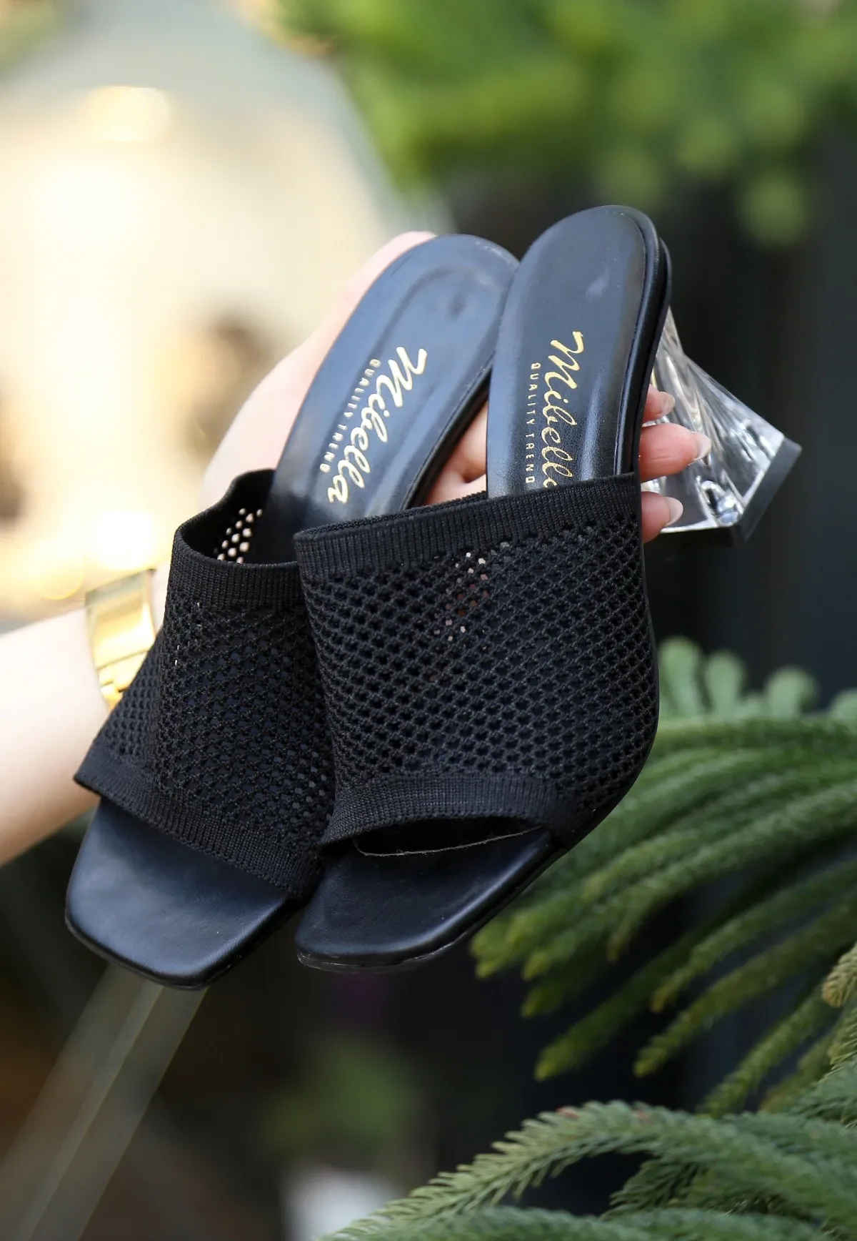 Akva Siyah Triko Şeffaf Topuklu Terlik