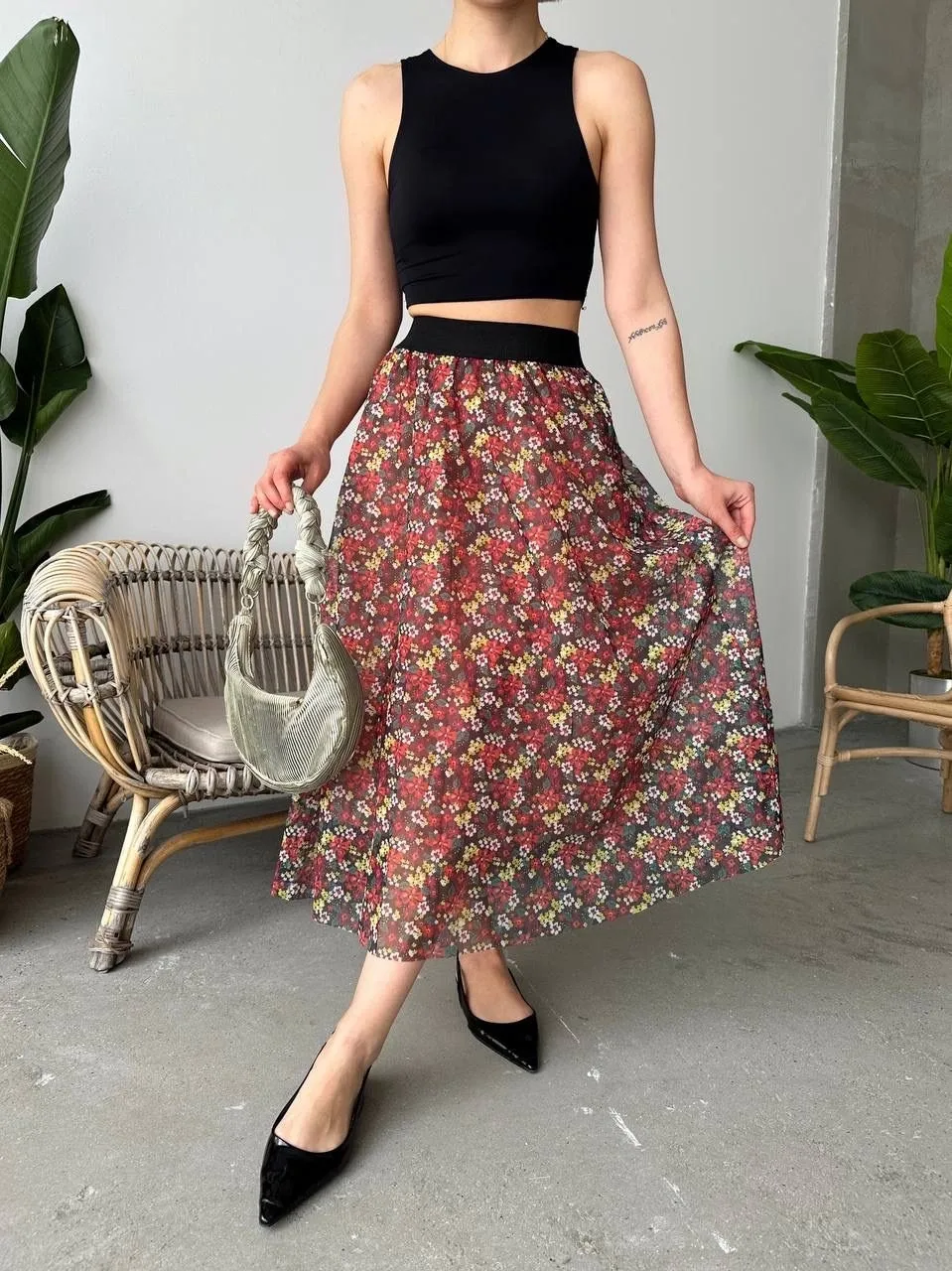 Bu baskılı astarlı uzun eteği günlük hayatta, özel davetlerde ya da iş ortamlarında gönül rahatlığıyla tercih edebilirsiniz.