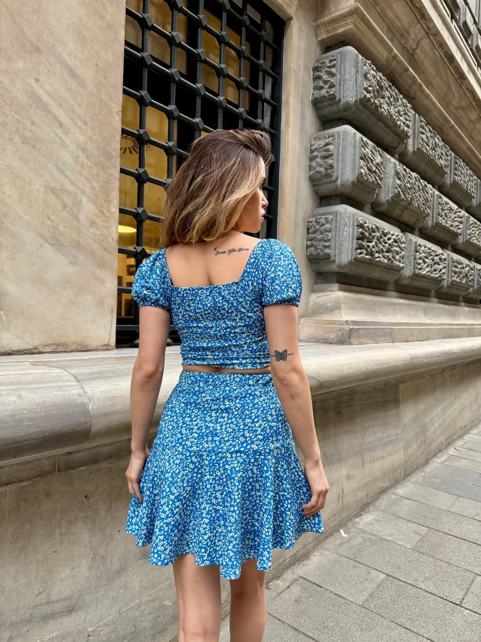 • Üst ve etek uyumlu bir kombin oluşturur.