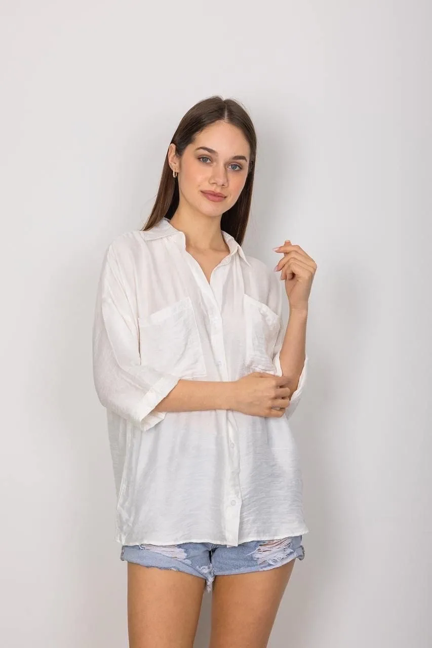 Şıklığı seven kadınların gardırobunda mutlaka bulunması gereken bir parçadır. T1010 Cepli Salaş Gömlek ile hem günlük hayatta hem de özel günlerde şık ve rahat bir görünüme sahip olabilirsiniz.