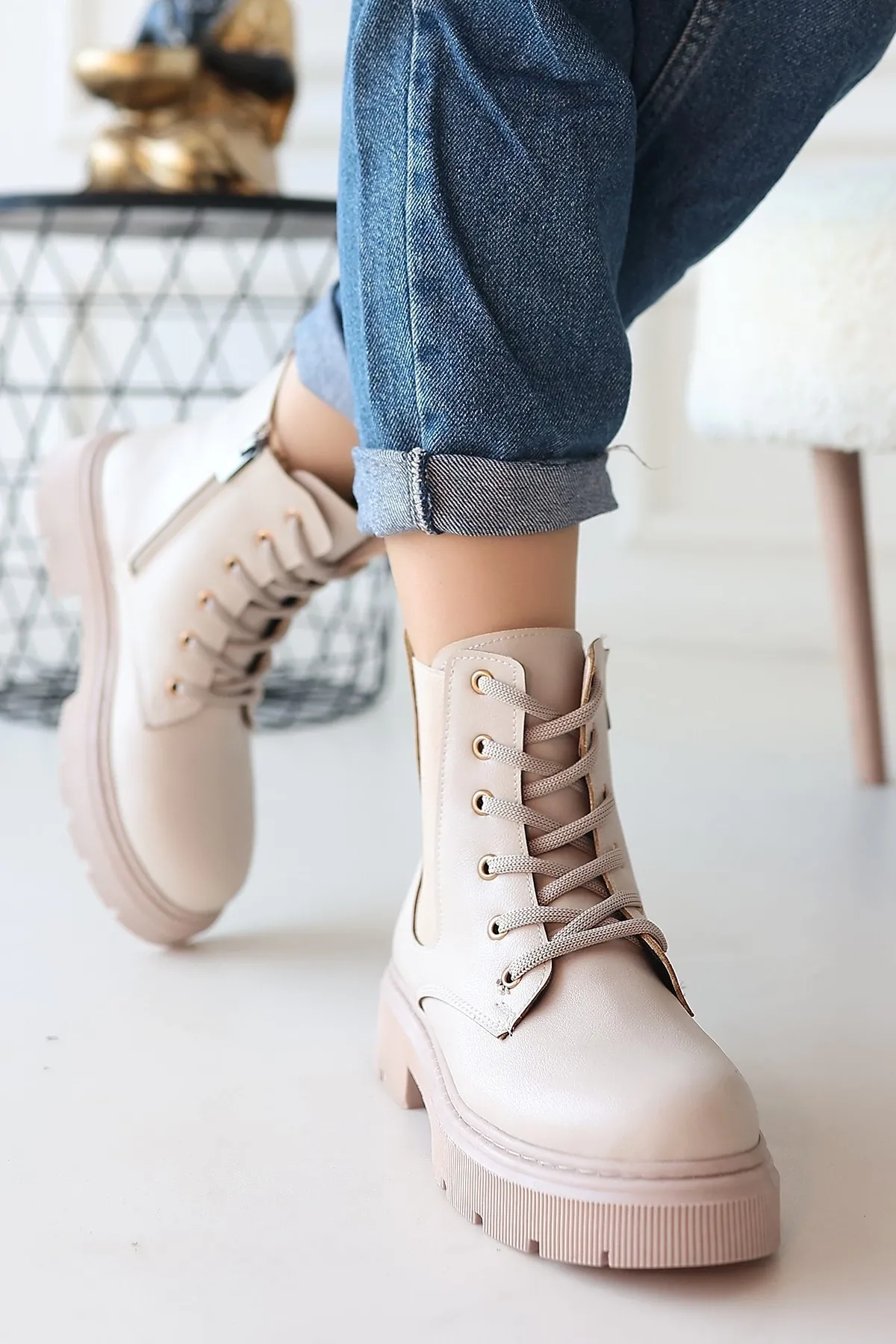Detay : Topuklu Yandan Fermuarlı Lastikli Bağcıklı Bot