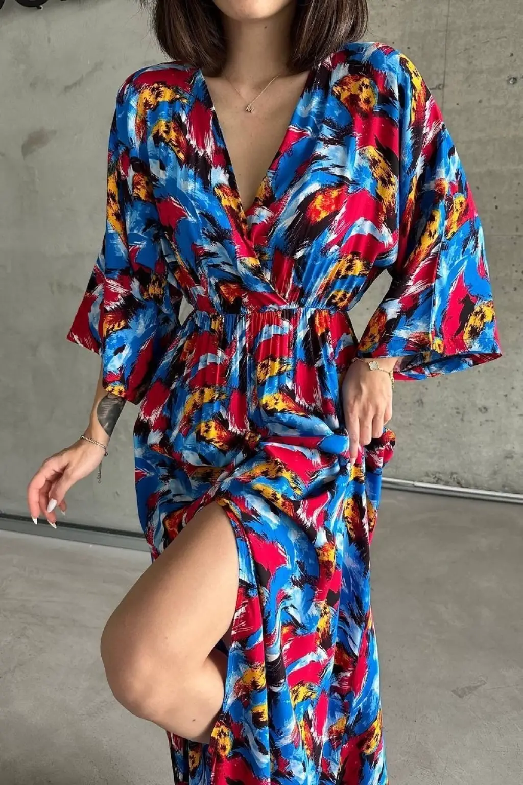 Dokuma Baskılı Yarasa Kol Elbise S8124 ile tarzınızı ön plana çıkarın! Modern ve şık tasarımıyla dikkat çeken bu elbise, gardırobunuzun vazgeçilmezi olmaya aday.