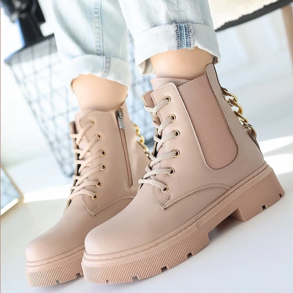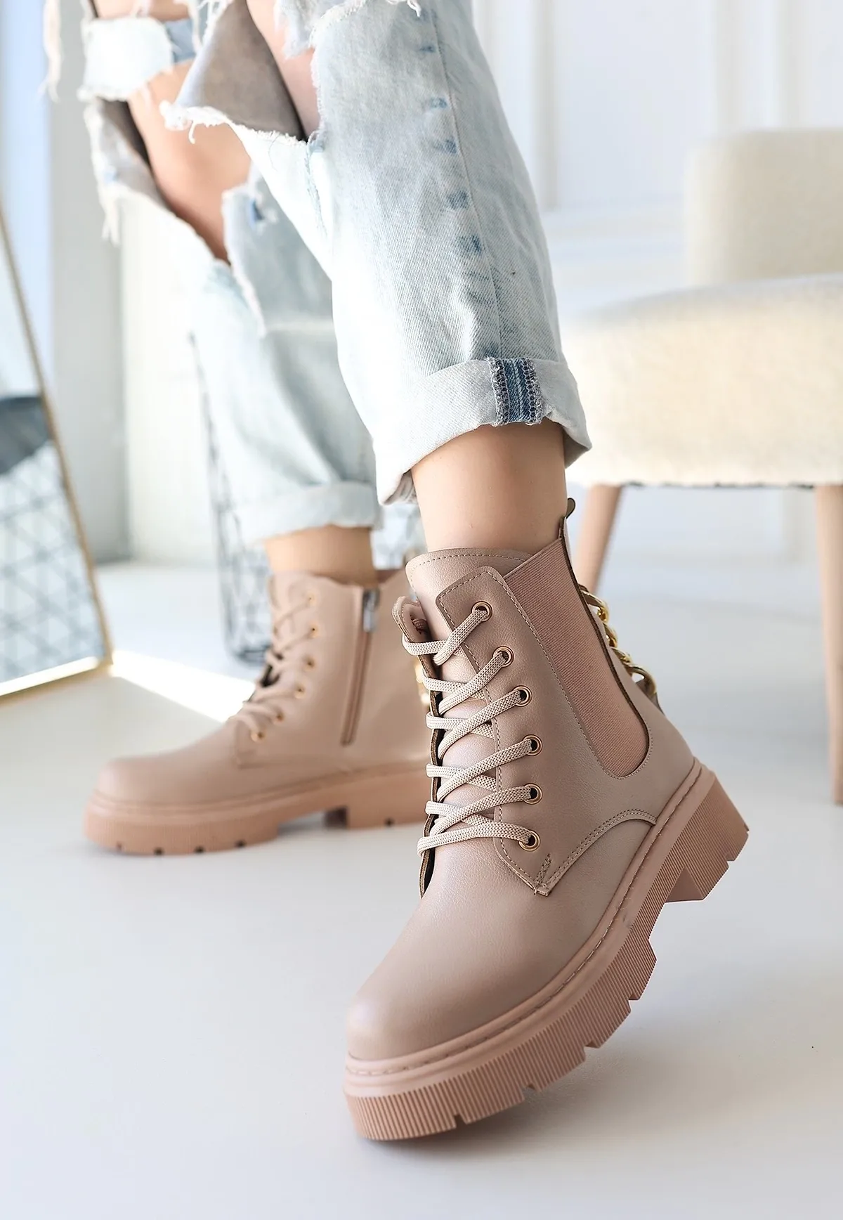 Detay : Topuklu Yandan Fermuarlı Bağcıklı Bot