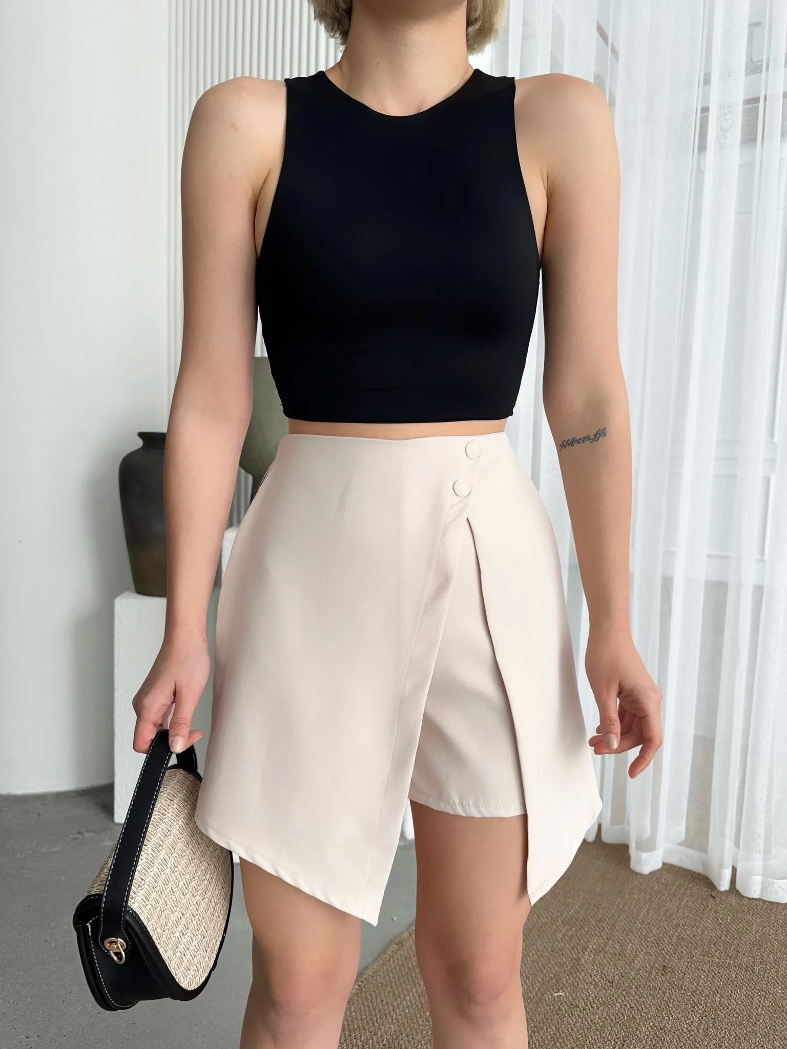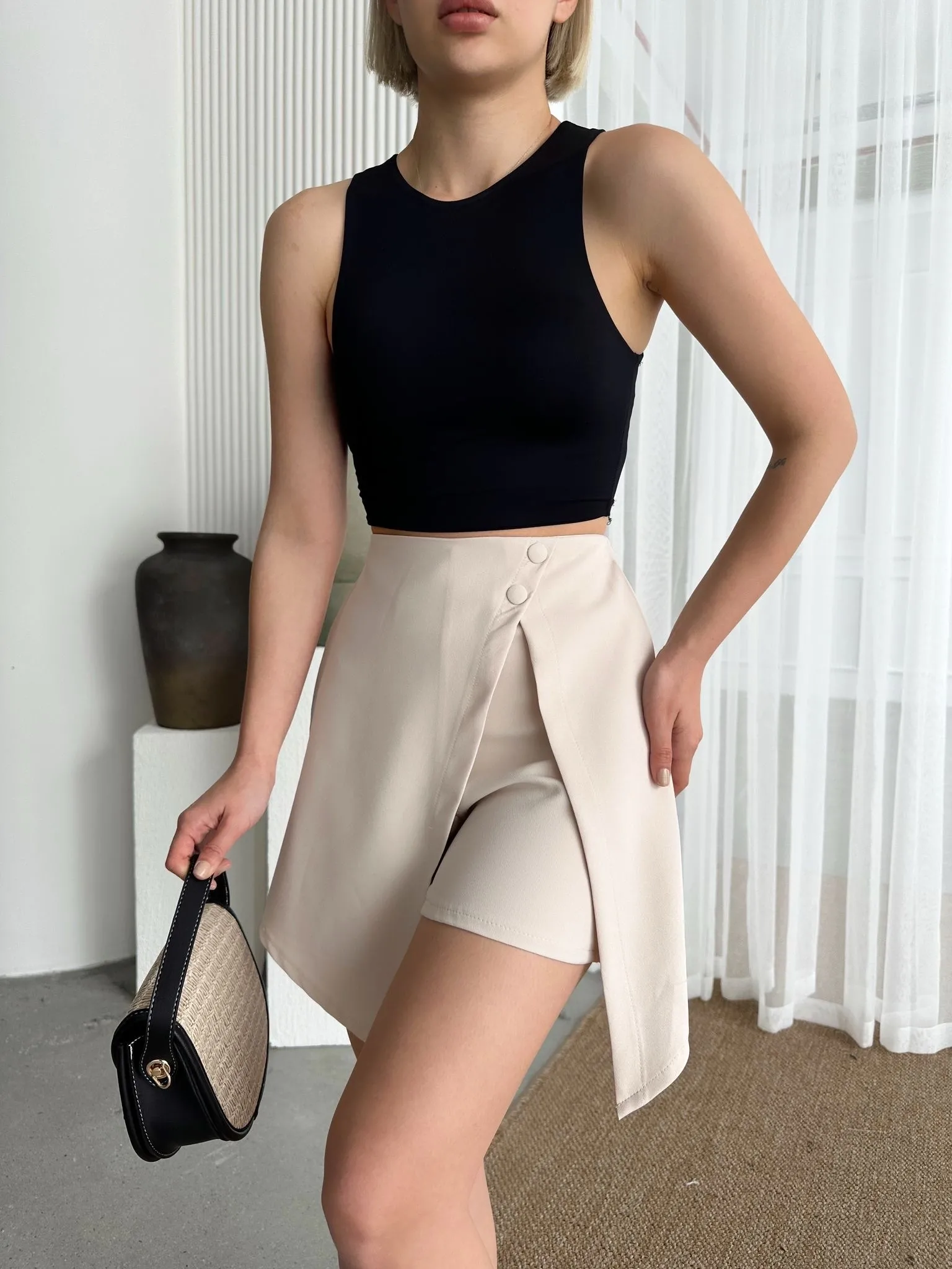 • İki düğmeli şort etek S24046