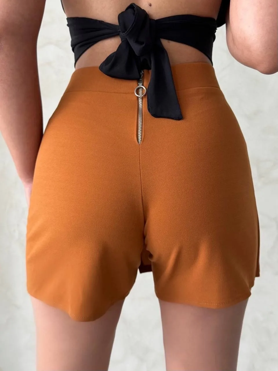 Şıklık ve rahatlığı bir arada sunan Kapaklı Şort Etek Camel S208, günlük şıklığınıza fark yaratacak.
