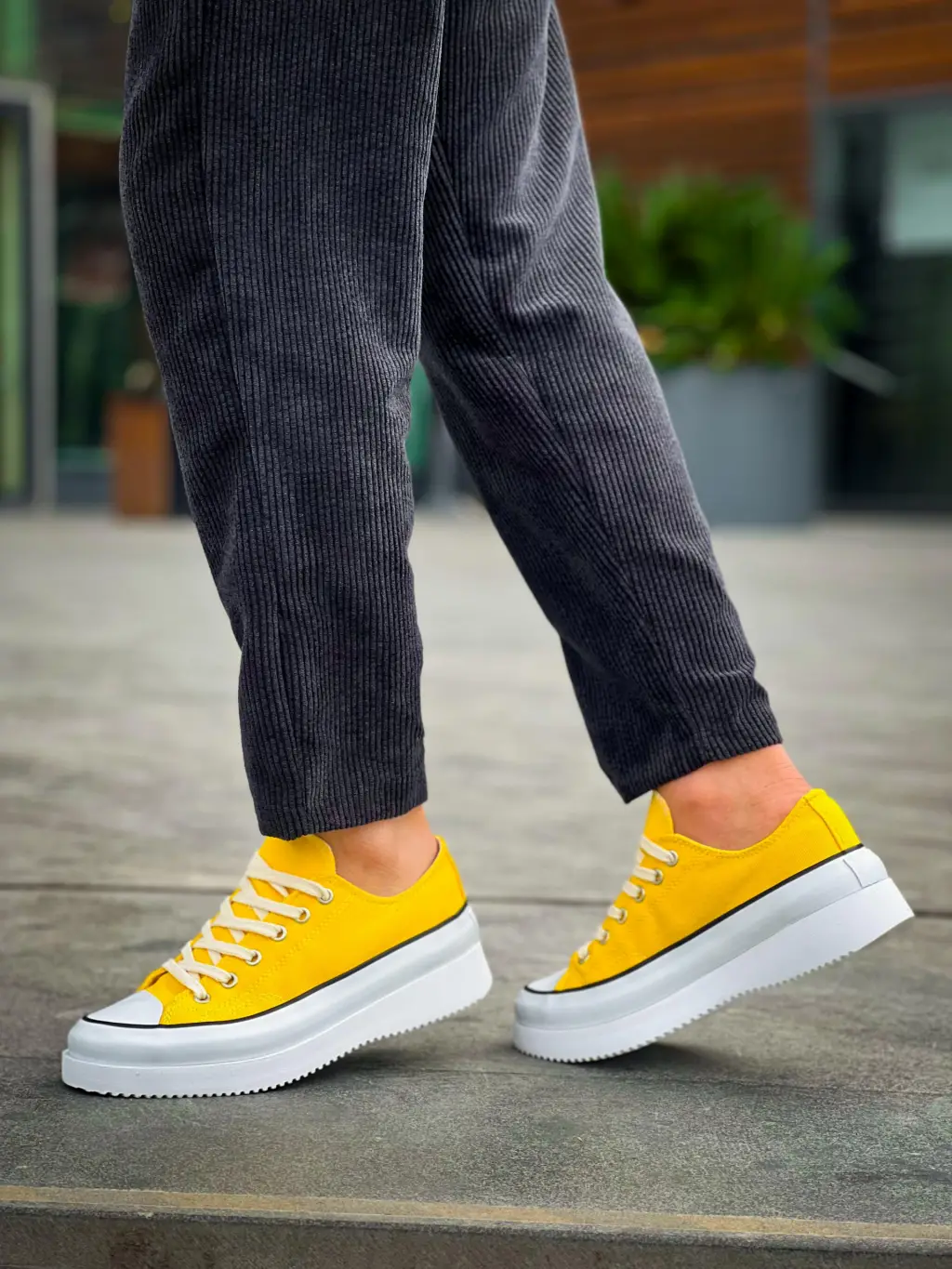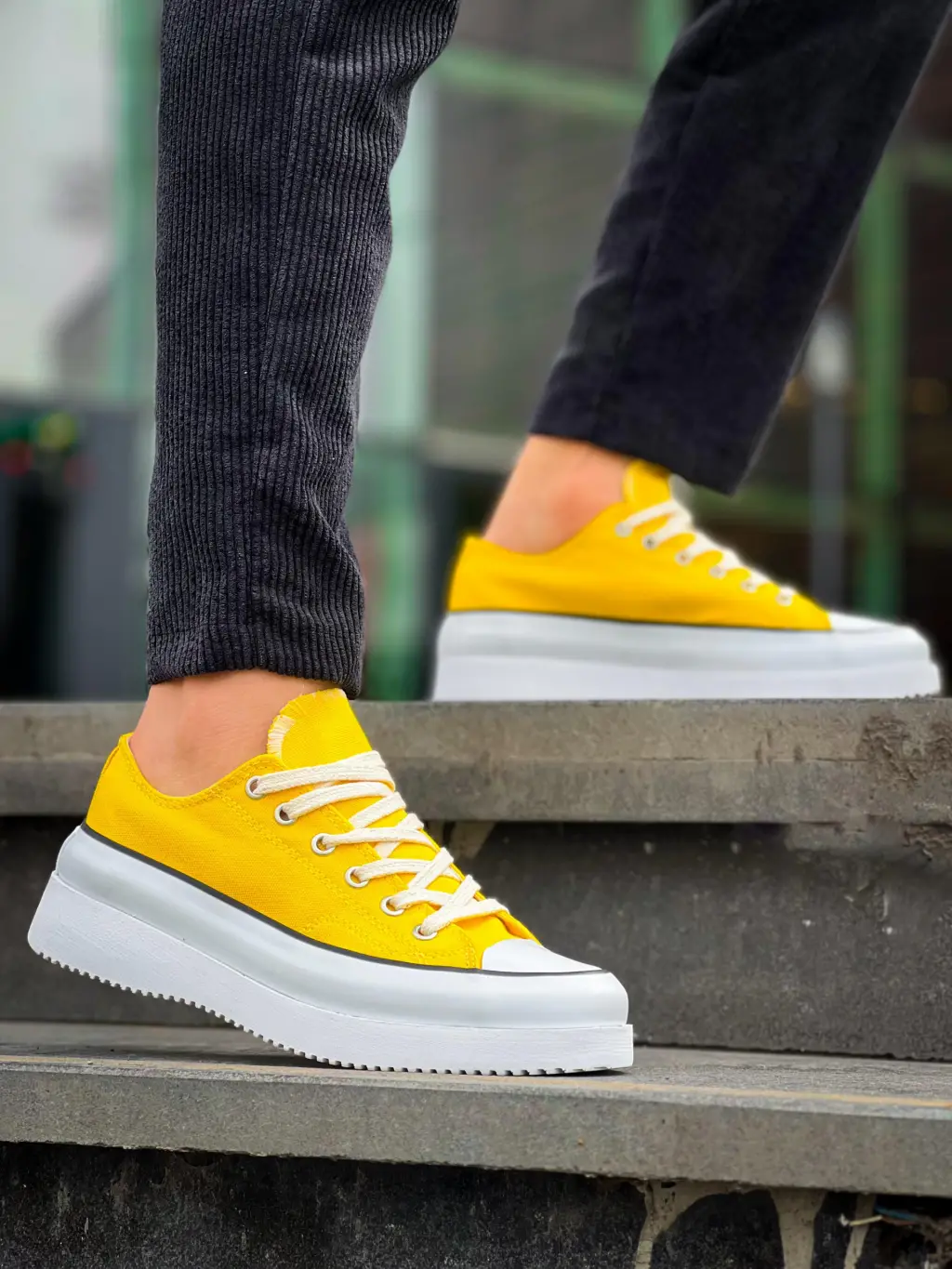 • KB-CX-3 Kuback Kısa Sarı Keten Beyaz Yüksek Taban Spor Ayakkabı