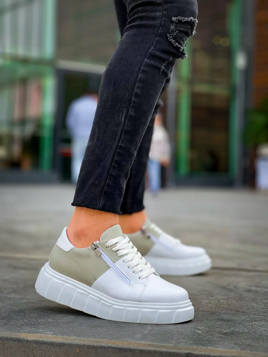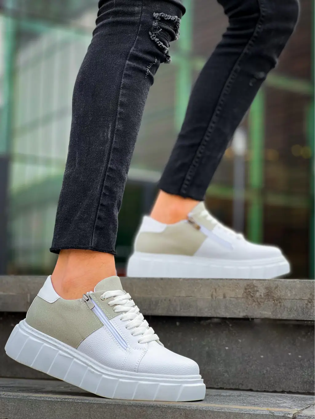 • KB-X155 Kuback Beyaz Cilt Gri Süet Detaylı Beyaz Yüksek Taban Günlük Spor Ayakkabı