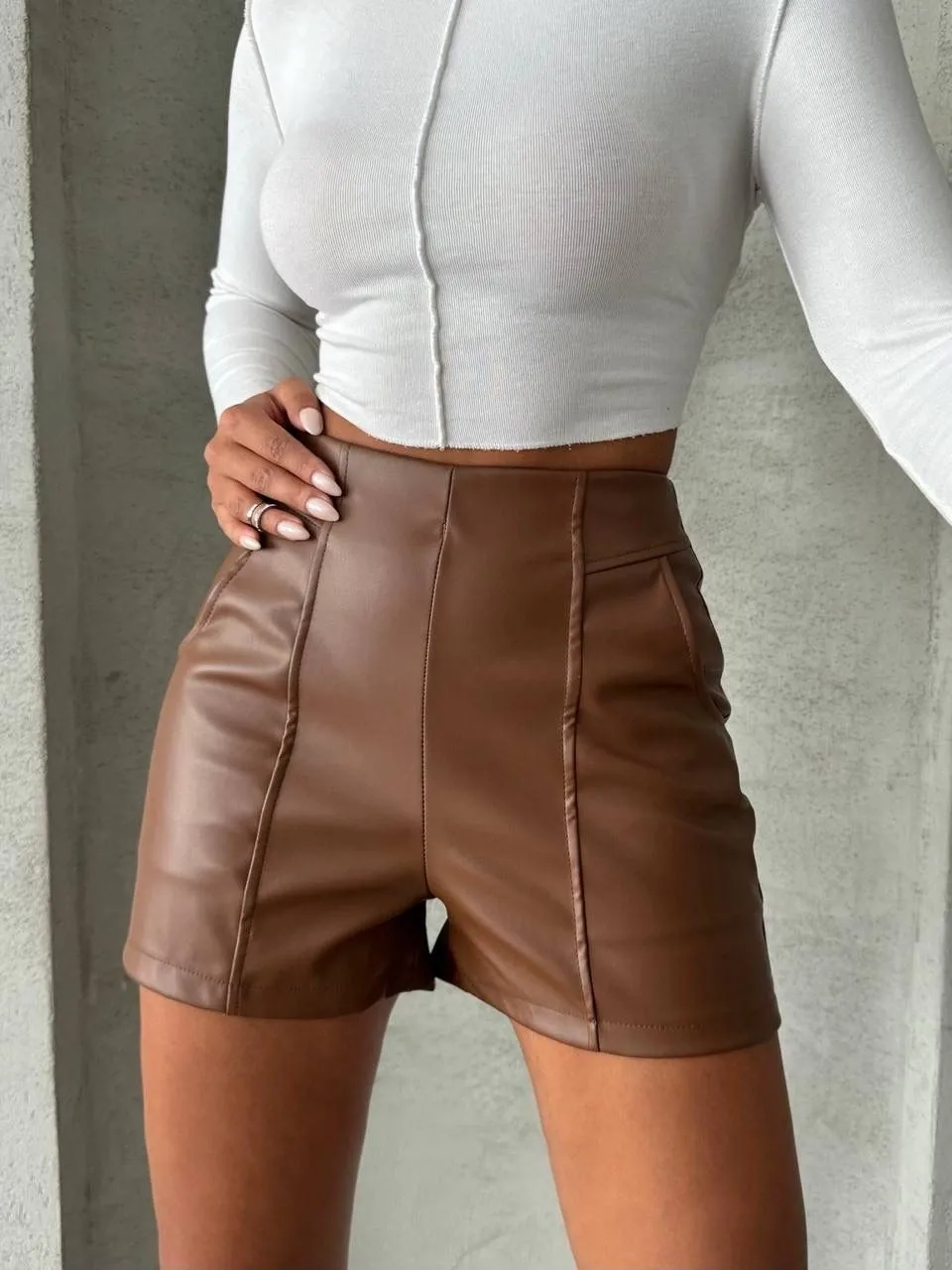 Bu parçalı cepli deri şort ile tarzınızı konuşturun, kendinizi özgür hissedin!
