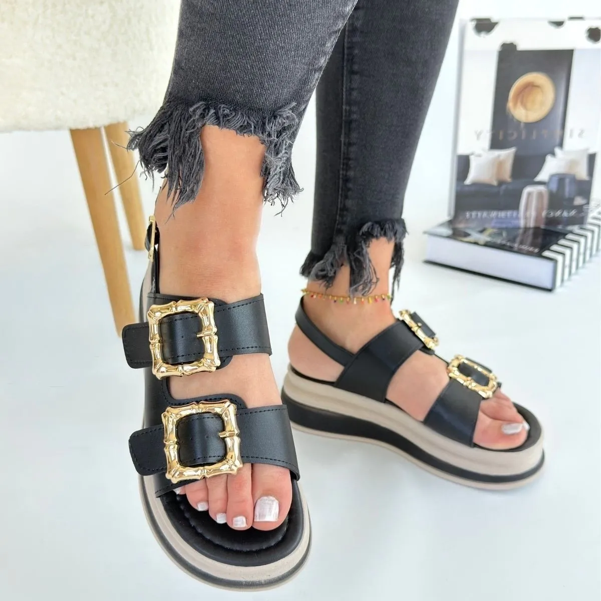 • Stan Siyah Cilt Sandalet