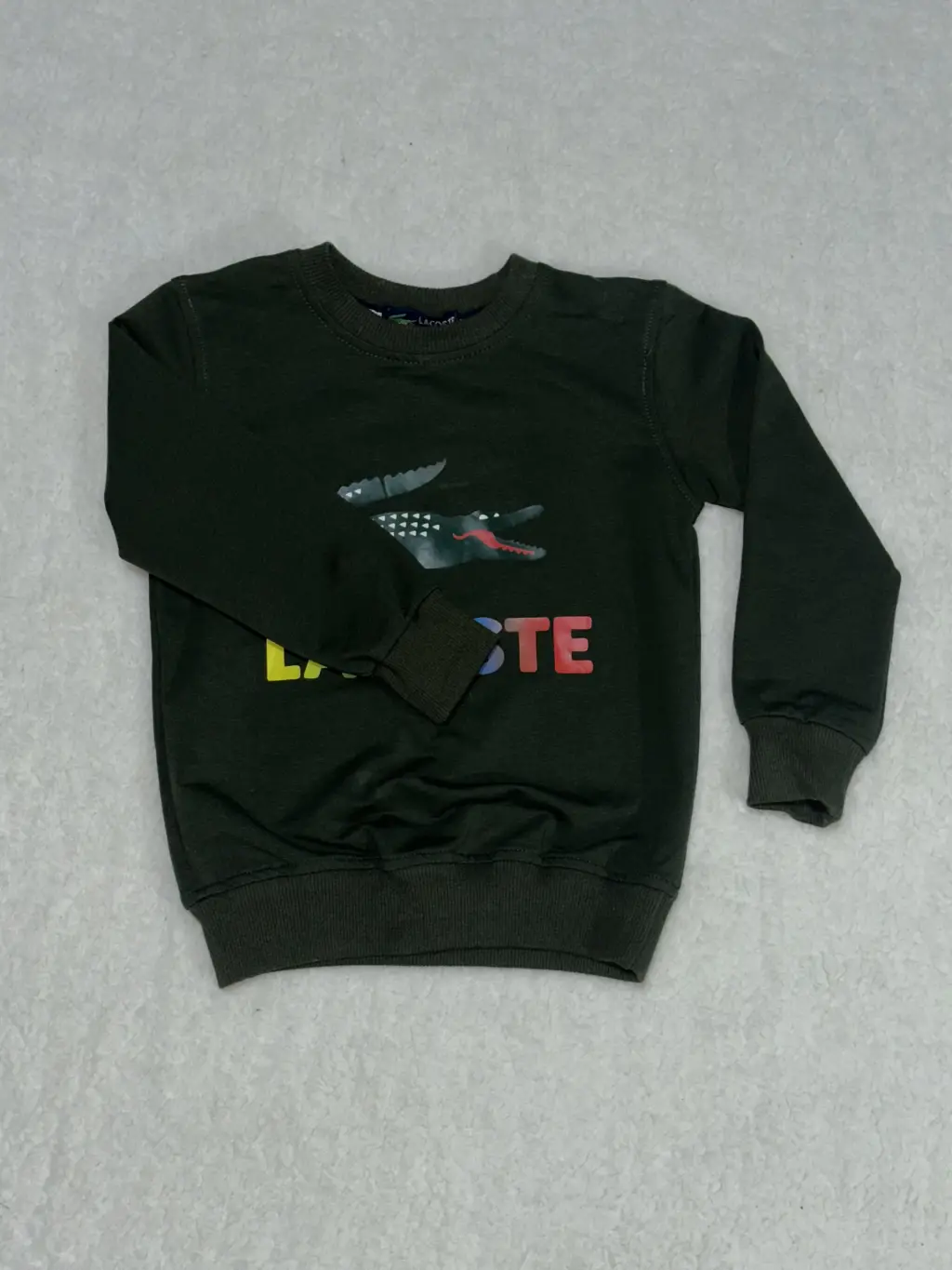 Timsah baskılı bisiklet yaka sweatshirt erkek çocuk haki, enerjik ve şık bir görünüm sunar.