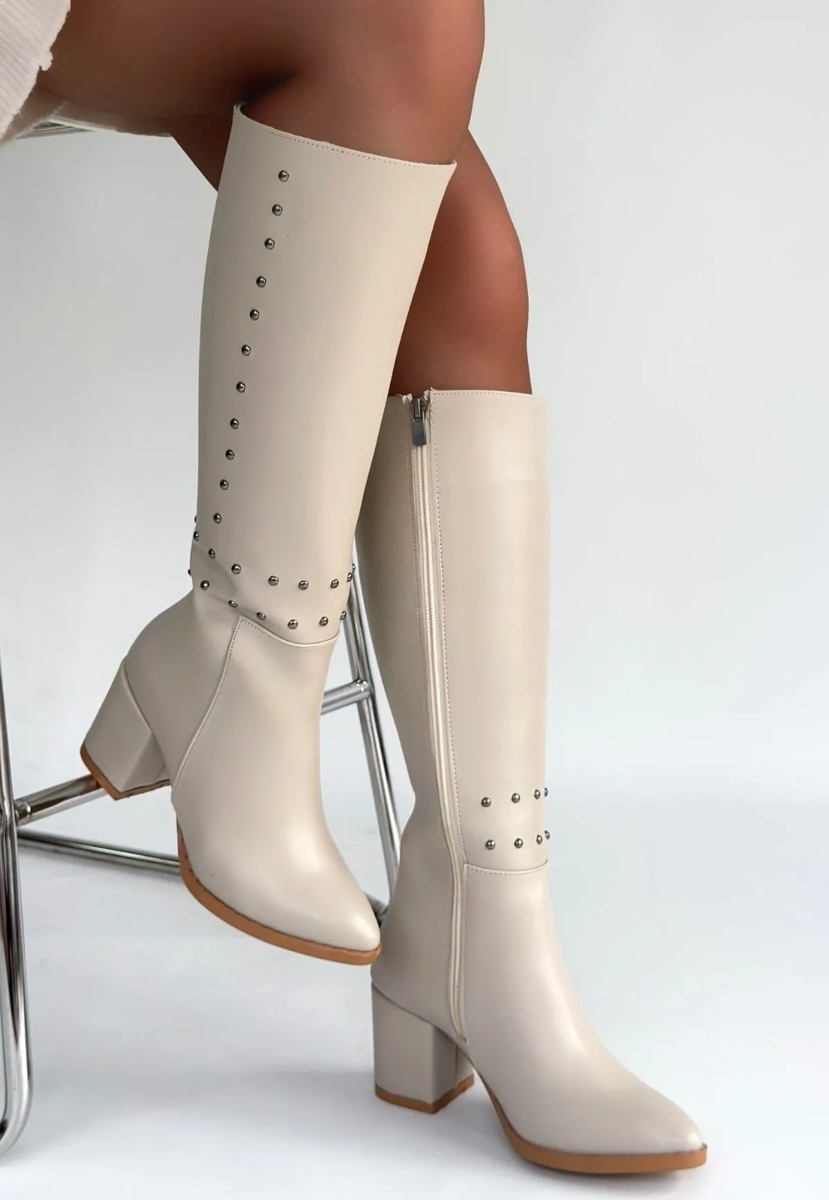 Tiyan Bej Cilt Topuklu Çizme