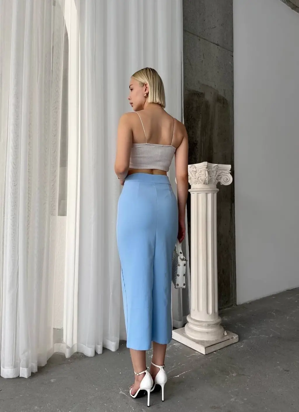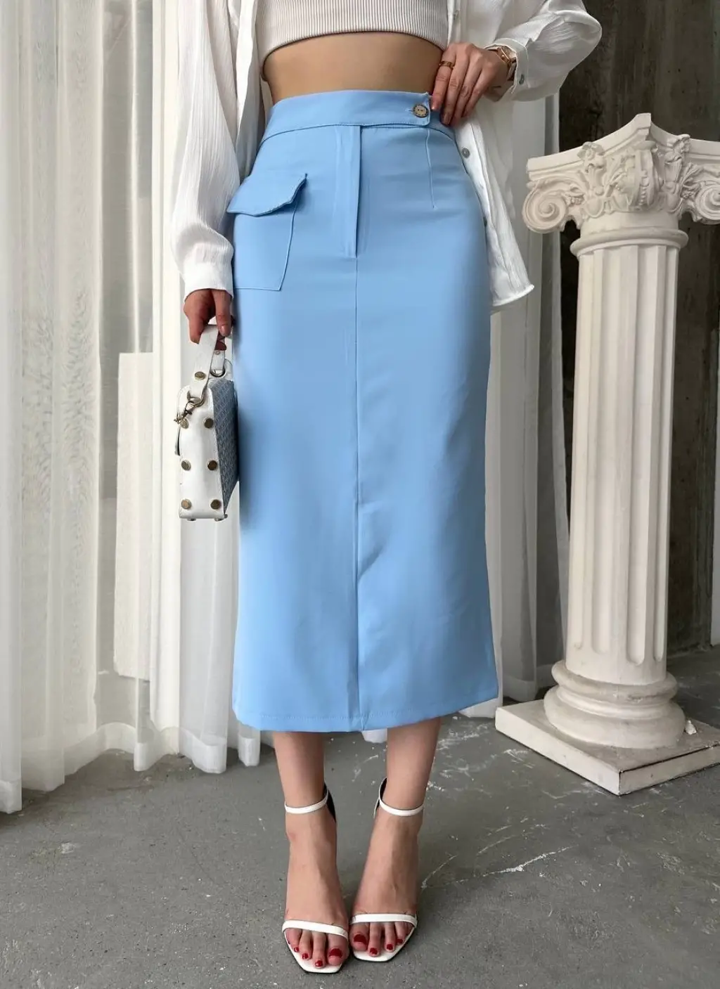 Cep detaylı oval kapaklı deri etek kahve h240048