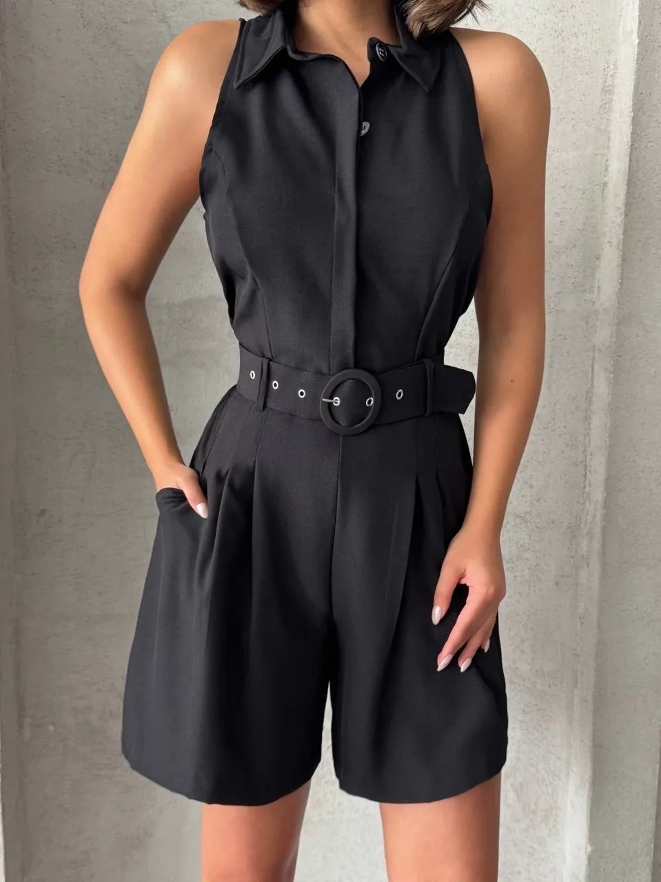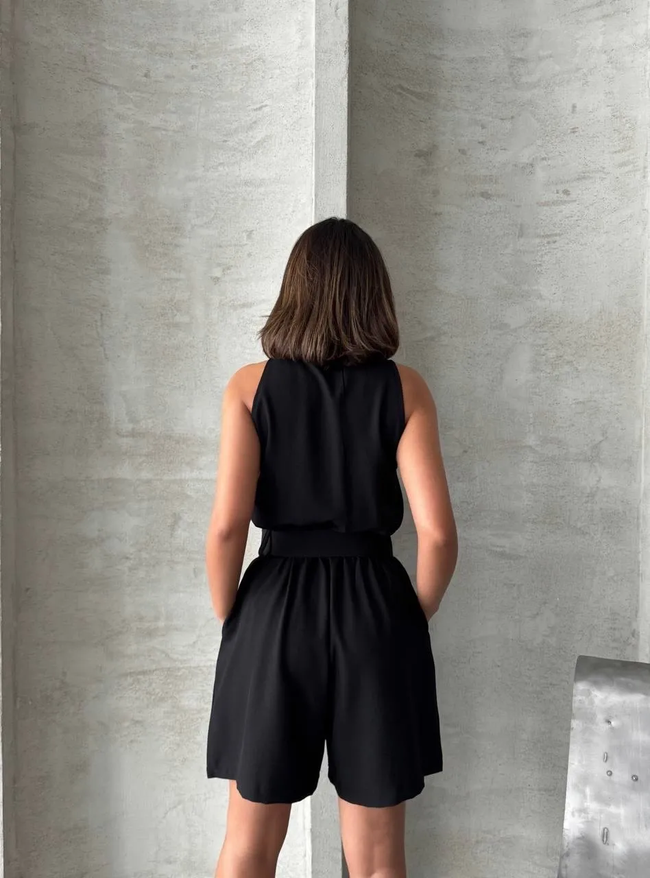 Yakalı şort tulum