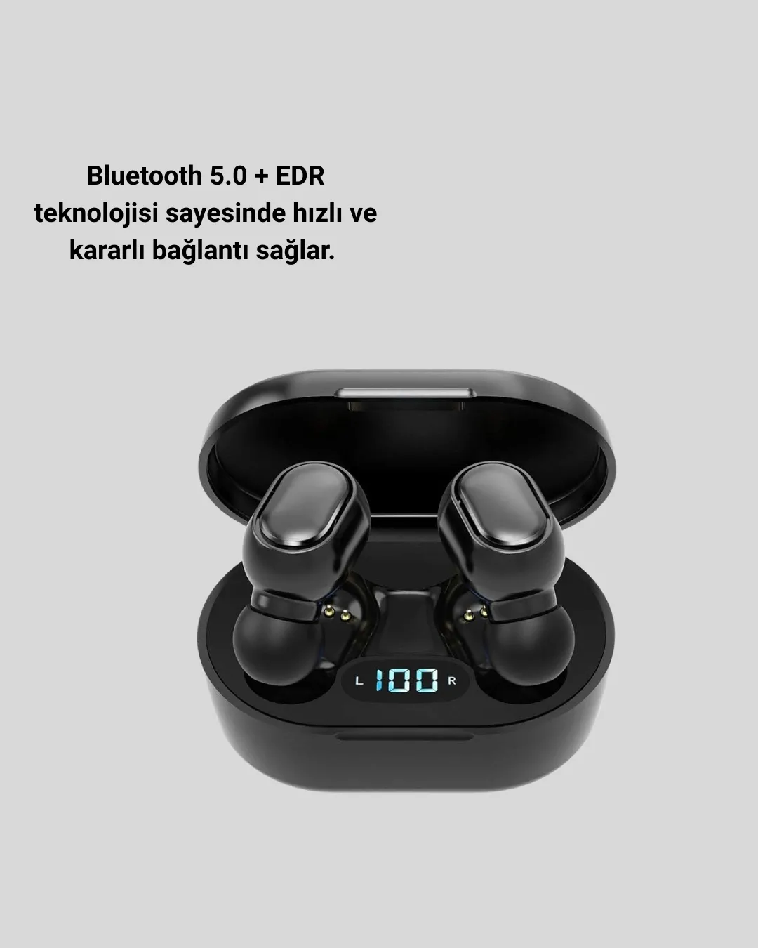 Teknolojiyi estetikle buluşturan bu Bluetooth kulaklık, gelişmiş hoparlör yapısıyla ses deneyimini üst seviyeye taşır. Derin basları ve net tizleriyle müzik keyfini artırır. LED ekranlı şarj kutusu sayesinde şarj durumunu anlık takip edebilir, 24 saate kadar toplam kullanım süresiyle gün boyu özgürce kullanabilirsiniz. Hafifliği ve kulak dostu tasarımıyla günün her anında yanınızda olmaya uygundur.