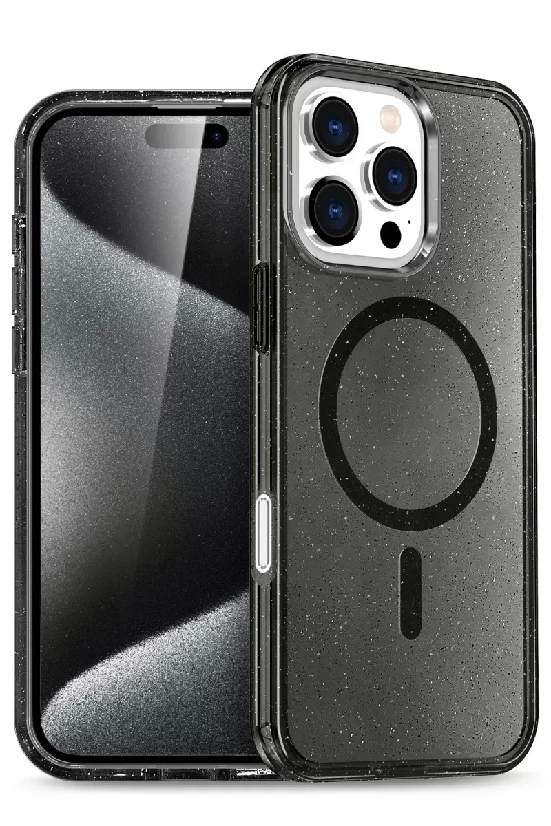 Joko iPhone 15 Pro Max Gleam PC Sert Magsafe Kılıf - Şeffaf-Siyah