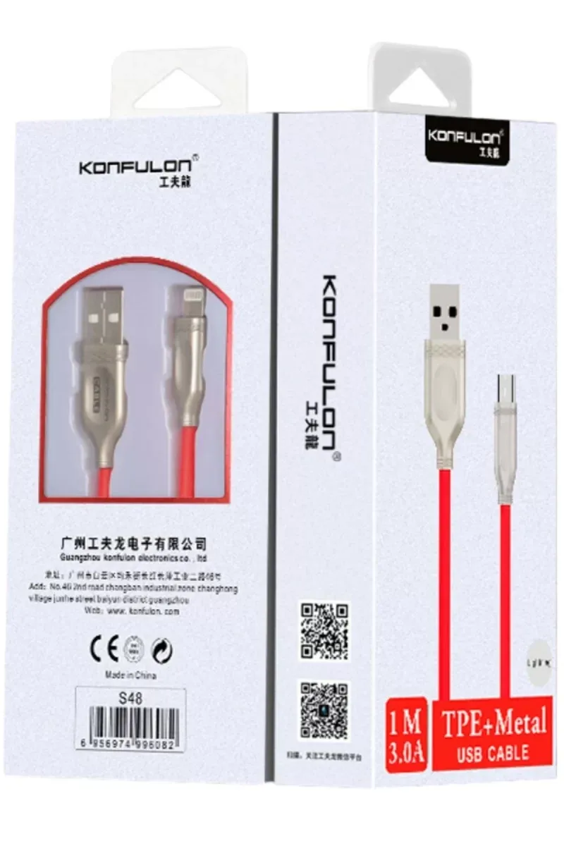 Konfulon S88 Metal Uçlu Micro USB Kablo 1M 2.4A - Kırmızı