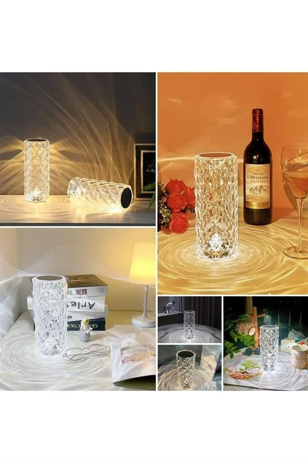 Kristal Lamba Masa Lambası Şarjlı Masa Lambası Dokunmatik Sensör Usb Şarjlı
