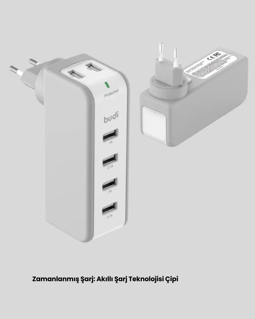Hızlı şarj ve zamanlayıcı özelliklerini bir araya getiren bu şarj cihazı, çoklu cihaz kullanımını kolaylaştırır. Otomatik kapanma özelliği ile enerji tasarrufu sağlar ve cihaz bataryalarının korunmasına yardımcı olur. Günlük kullanım için pratik ve güvenli bir çözümdür.