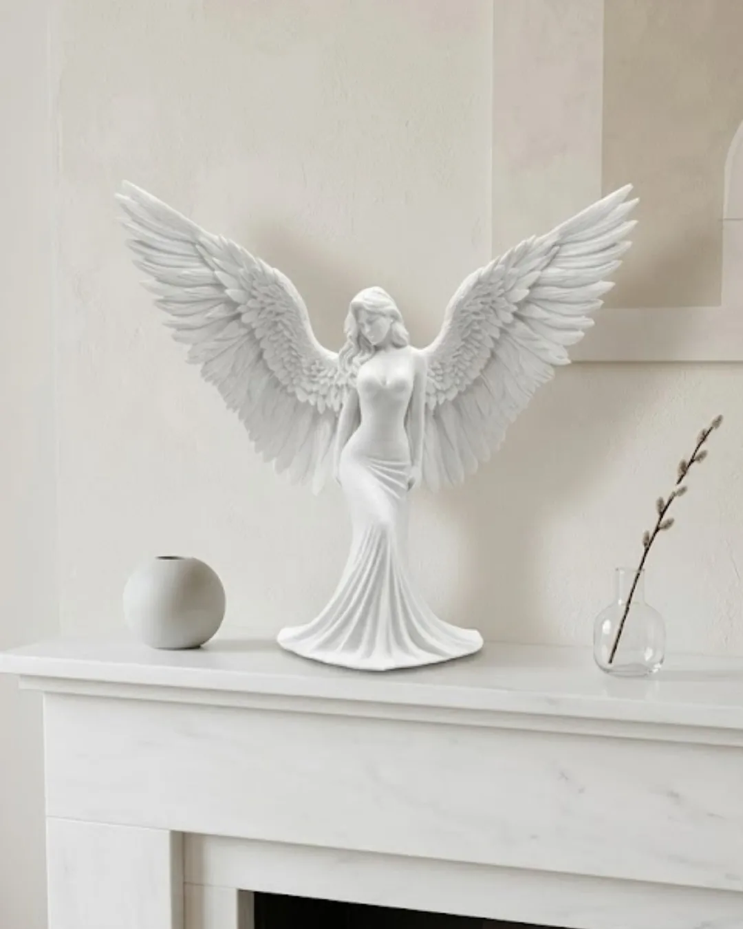 Melek insan figürlü 3D dekoratif heykel biblo, zarif tasarımı ve sanatsal görünümü ile ev dekorasyonunda dikkat çeken estetik dekoratif objelerden biridir. Kanatlarını iki yana açmış melek figürü, huzur, koruma, zarafet ve saflık gibi anlamları temsil eden güçlü bir semboldür. Bu nedenle melek figürlü dekoratif ürünler yaşam alanlarında hem anlamlı hem de estetik bir atmosfer oluşturmak için sıklıkla tercih edilir. Modern tasarım anlayışı ile üretilen bu 3D dekoratif heykel, bulunduğu ortama zarif bir dokunuş kazandırır. 3D baskı teknolojisi ile üretilmiş olan bu dekoratif biblo, detaylı kanat yapısı ve akıcı figür tasarımı ile oldukça dikkat çekici bir görünüm sunar. Melek figürünün geniş kanatları ve zarif duruşu ürüne sanatsal bir karakter kazandırırken aynı zamanda bulunduğu ortamda estetik bir odak noktası oluşturur. Elbisenin akıcı formu ve figürün dengeli duruşu dekoratif heykelin bir sanat eseri gibi görünmesini sağlar. Dekoratif melek figürlü heykel özellikle salon dekorasyonunda oldukça şık bir tamamlayıcı aksesuar olarak kullanılabilir. Konsol üzerinde, şömine rafında, kitaplık rafında veya sehpa üzerinde sergilendiğinde bulunduğu ortama huzurlu ve estetik bir atmosfer kazandırır. Aynı zamanda giriş alanlarında veya çalışma odalarında da dekoratif bir obje olarak kullanılabilir. Beyaz renkli sade tasarımı sayesinde modern dekorasyon, minimalist dekorasyon ve klasik dekorasyon stilleri ile uyum sağlayabilecek bir görünüme sahiptir. Bu özellik ürünü farklı dekorasyon tarzlarına sahip yaşam alanlarında kullanılabilir hale getirir. Açık renkli yüzeyi sayesinde bulunduğu ortamda ferah ve zarif bir görünüm oluşturur. Dekoratif melek insan figürlü 3D heykel biblo aynı zamanda anlamlı bir hediye alternatifi olarak da tercih edilebilir. Ev hediyesi, yeni ev hediyesi, doğum günü hediyesi veya özel gün hediyesi olarak verilebilecek estetik bir dekoratif üründür. Modern tasarımı, zarif figürü ve detaylı kanat yapısı sayesinde melek figürlü 3D dekoratif heykel biblo yaşam alanlarında huzur veren ve estetik bir atmosfer oluşturan şık bir dekoratif aksesuardır.
