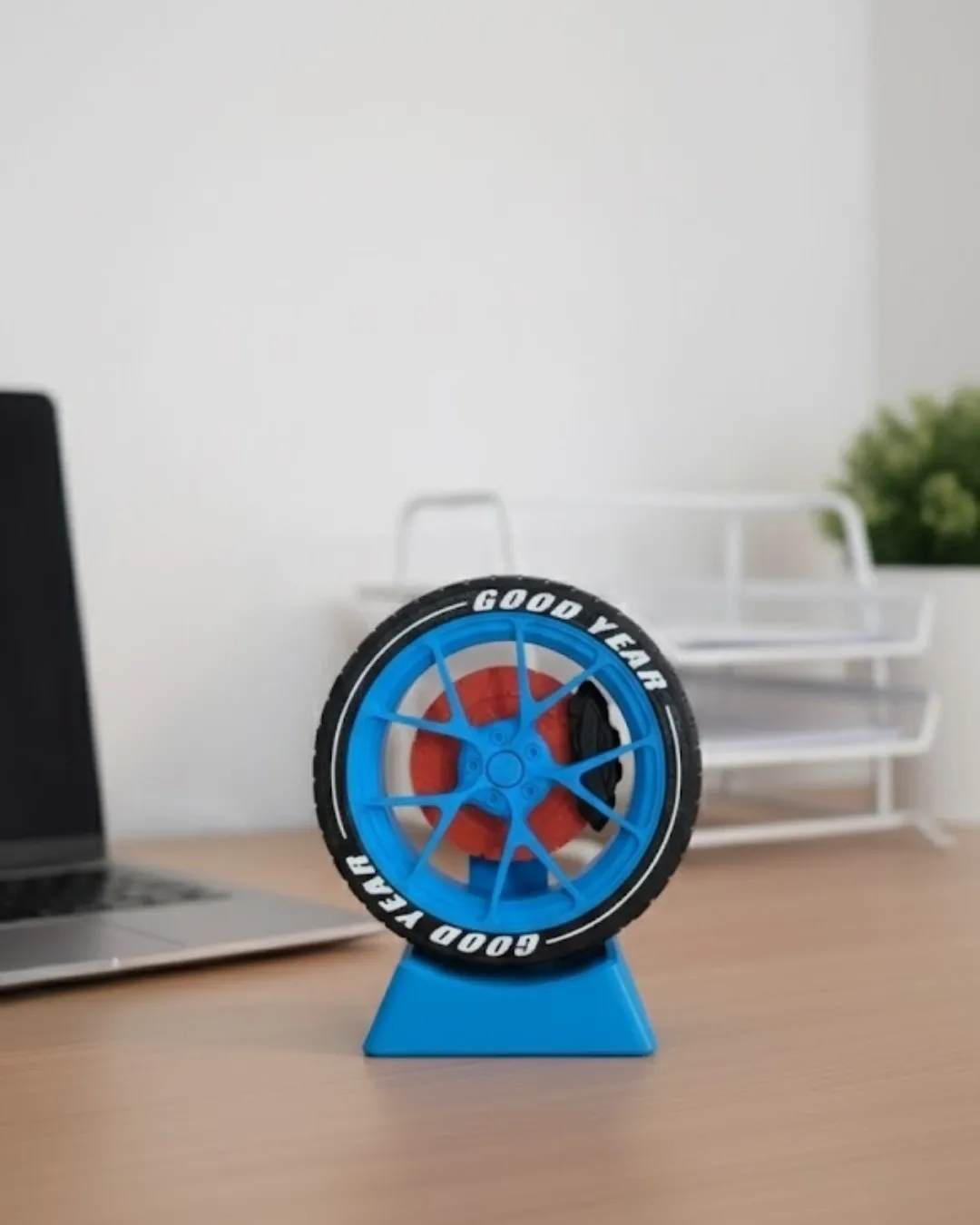 Modern ofis dekoru anlayışına uygun olarak tasarlanan bu jant görünümlü masa üstü aksesuar, sade çalışma alanlarına hareket kazandırır. Raf, masa veya sehpa üzerinde sergilenebilir. Ofis ortamında dekoratif obje olarak kullanıldığı gibi vitrin veya showroom alanlarında da şık bir tamamlayıcıdır. Minimal ve kompakt yapısı sayesinde her alana uyum sağlar. Spor ve modern tarzı bir araya getiren dekoratif bir üründür.