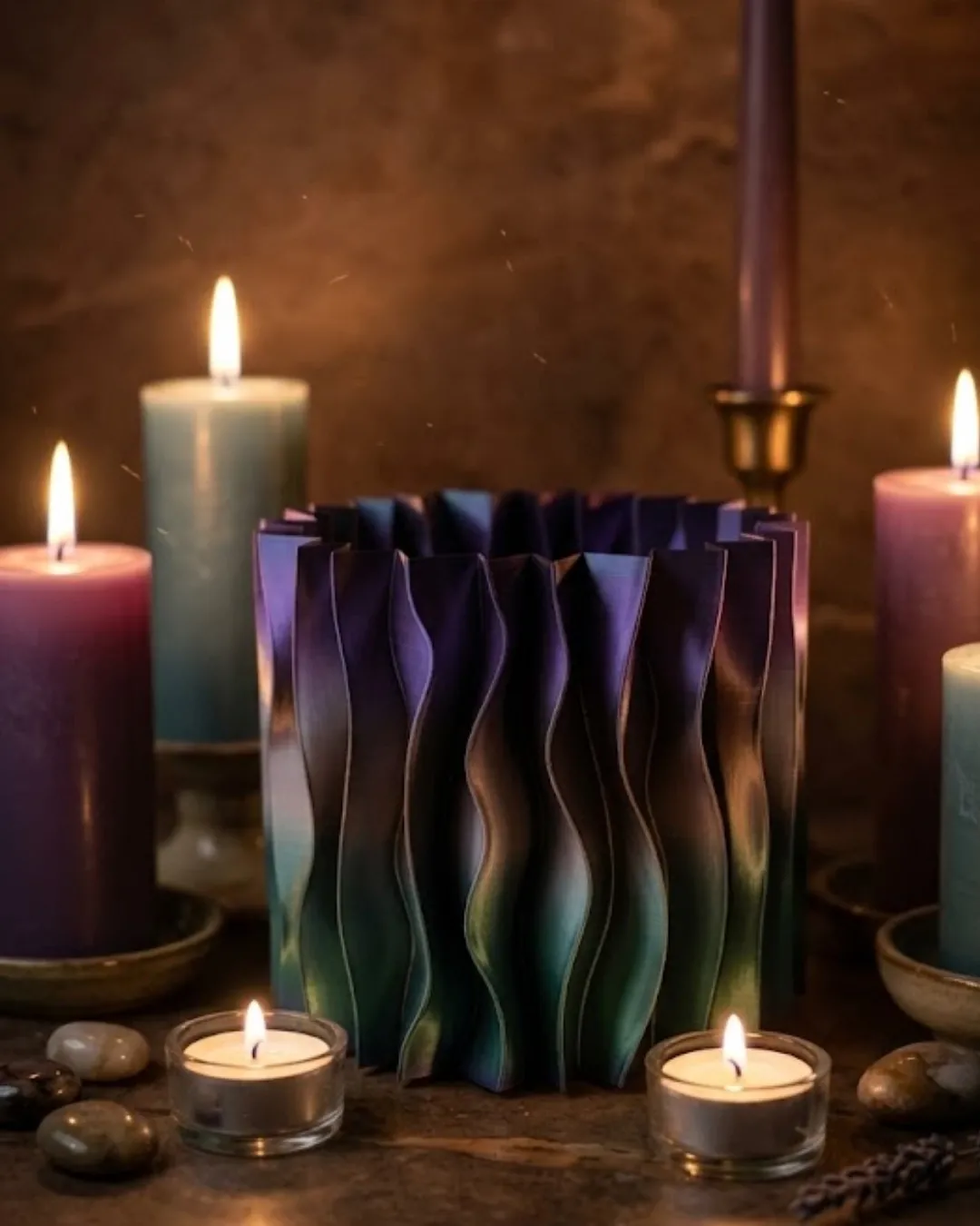 Estetik dalga form tasarımlı mor 3D dekoratif vazo, modern dekorasyon anlayışını yansıtan şık ve dikkat çekici bir dekoratif üründür. Dalgalı yüzey yapısı sayesinde klasik vazolardan farklı bir tasarım sunar ve bulunduğu ortamda modern bir dekoratif obje olarak öne çıkar. 3D baskı teknolojisi kullanılarak üretilen bu dekoratif vazo, yüzeyindeki dalgalı tasarım sayesinde ışık ile farklı açılarda farklı gölgeler oluşturarak dekoratif bir derinlik hissi yaratır. Bu sayede ürün yalnızca bir vazo değil aynı zamanda sanatsal bir dekoratif obje olarak da değerlendirilebilir. Mor renk tonları dekorasyonda zarif ve estetik bir görünüm oluşturur. Bu nedenle mor dekoratif vazo özellikle modern, minimalist ve sanatsal dekorasyon stilleri ile uyum sağlayabilecek bir tasarıma sahiptir. Dekoratif mor 3D vazo özellikle kuru çiçekler, dekoratif bitkiler veya minimal bitki düzenlemeleri için oldukça uygun bir kullanım sunar. Bunun yanında masa dekoru veya raf dekoru olarak da kullanılabilir. Salon, çalışma odası, kitaplık veya ofis masası üzerinde kullanıldığında bulunduğu ortama modern ve estetik bir atmosfer kazandırır. Minimalist dekorasyon ve modern dekorasyon stilleri ile uyumlu bir kullanım sunar. Dekoratif 3D mor vazo aynı zamanda dekoratif hediye alternatifi olarak da tercih edilebilir. Ev hediyesi, yeni ev hediyesi veya doğum günü hediyesi olarak oldukça şık bir seçenektir. Modern tasarımı, estetik görünümü ve sanatsal formu sayesinde dalgalı tasarımlı mor 3D dekoratif vazo yaşam alanlarında dikkat çeken şık bir dekoratif aksesuar olarak öne çıkar.