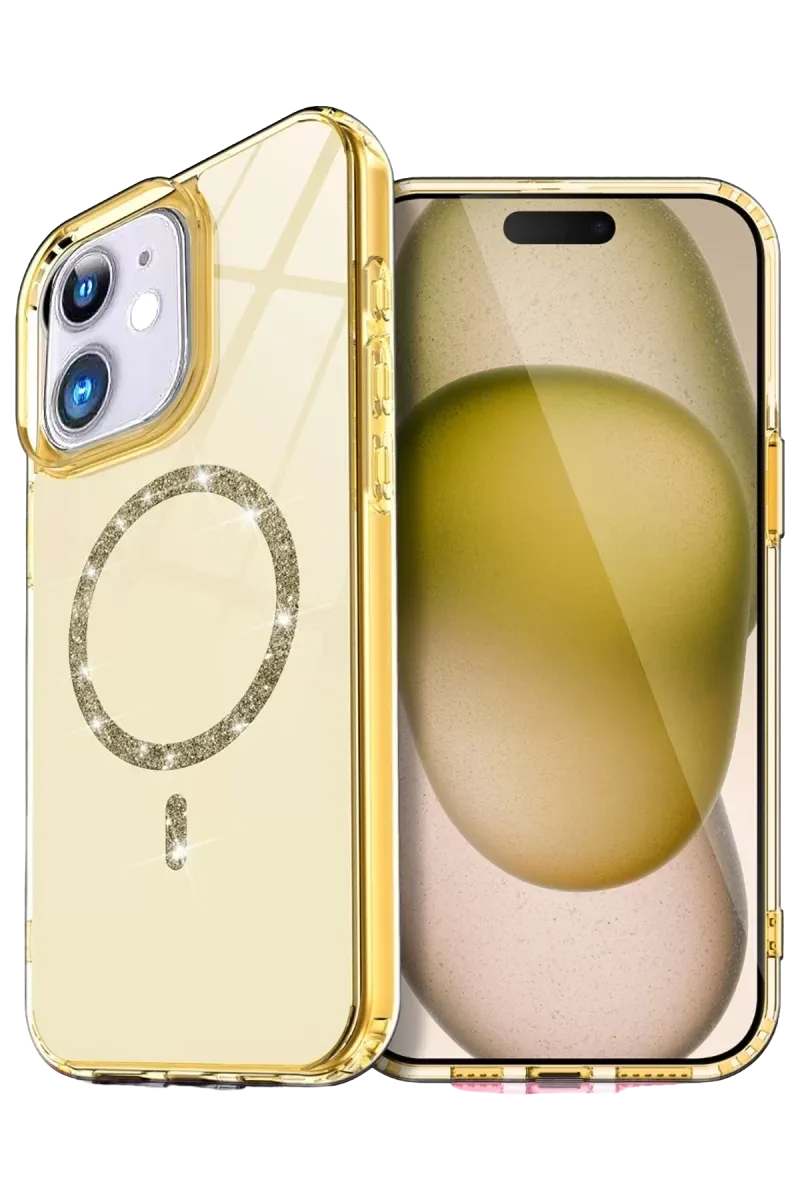 Newface Apple iPhone 12 Live Diamond Magsafe Kapak - Sarı
