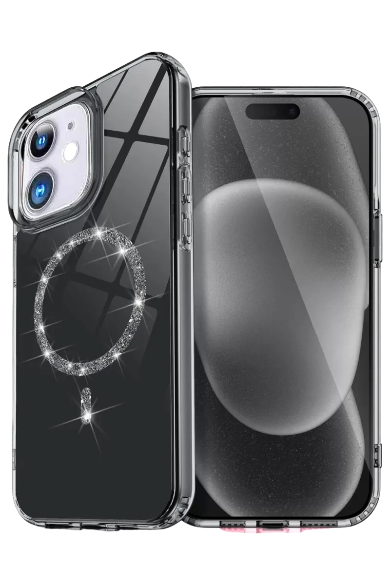 Newface Apple iPhone 12 Live Diamond Magsafe Kapak - Siyah