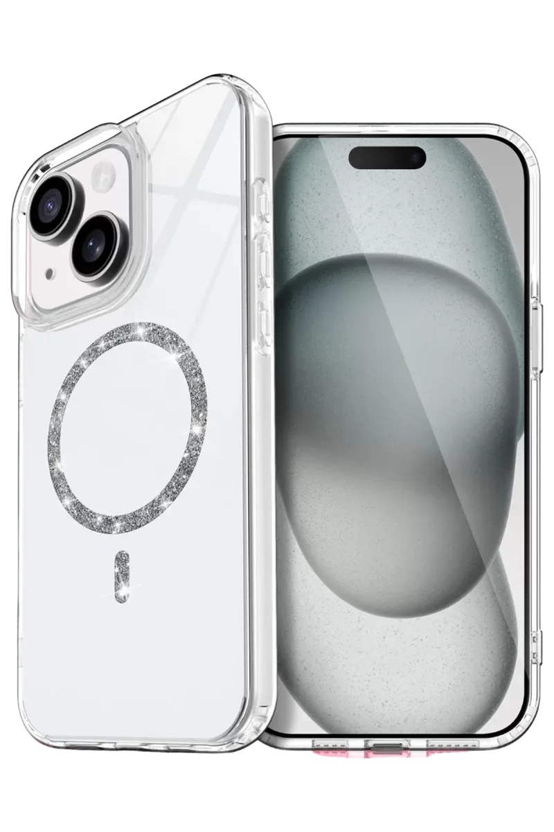 Newface Apple iPhone 15 Plus Live Diamond Magsafe Kapak - Şeffaf