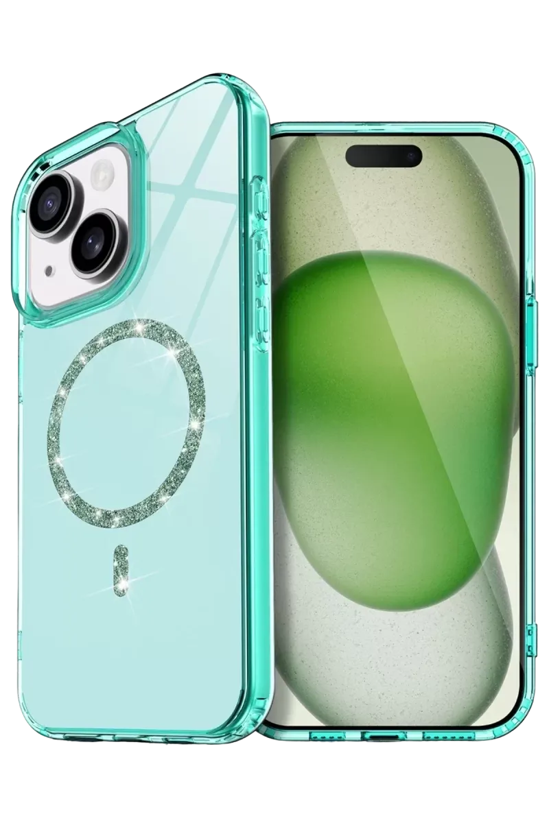 Newface Apple iPhone 15 Plus Live Diamond Magsafe Kapak - Yeşil