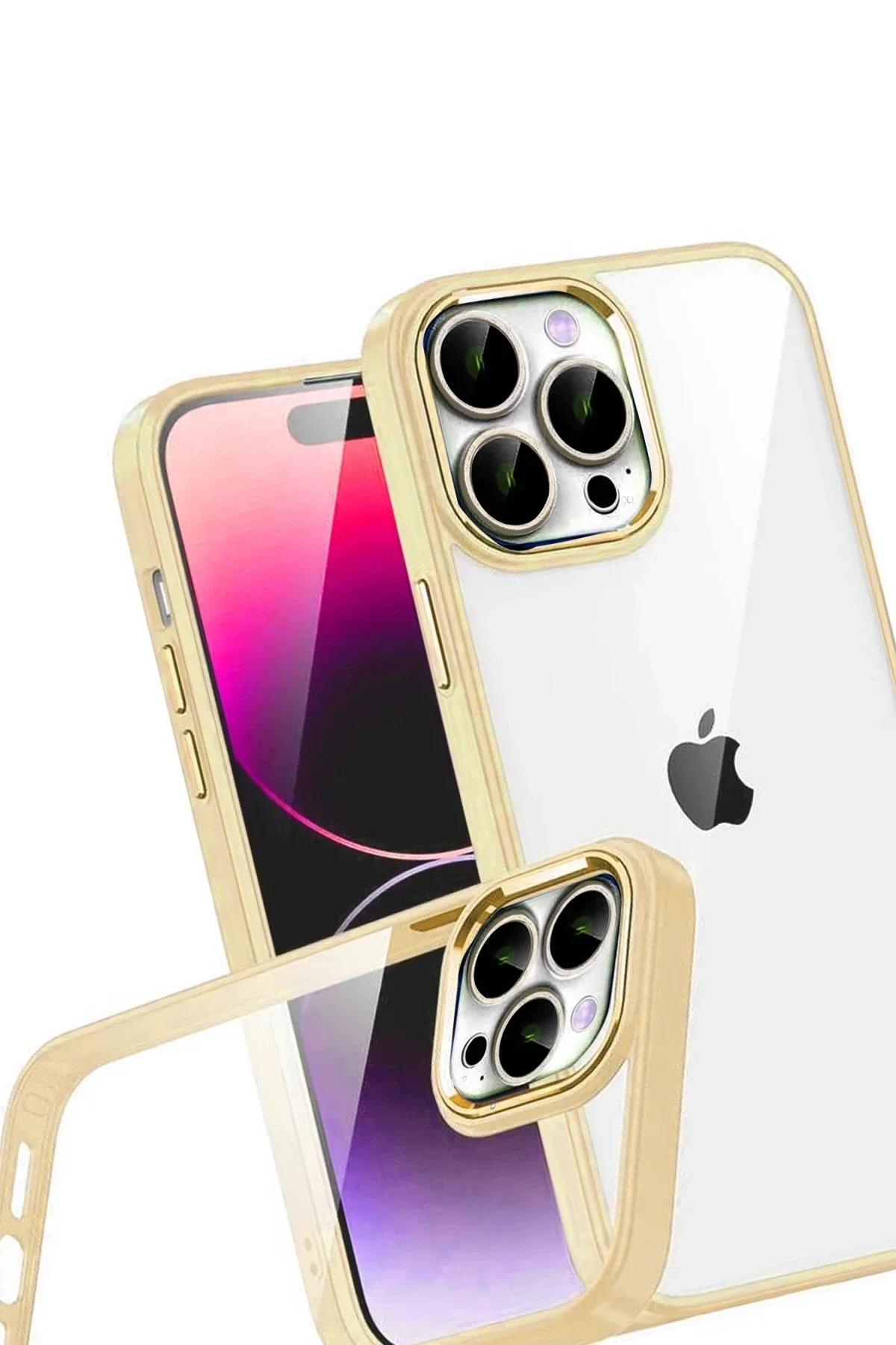 Newface Apple iPhone 15 Pro Max Razer Lensli Silikon - Gold