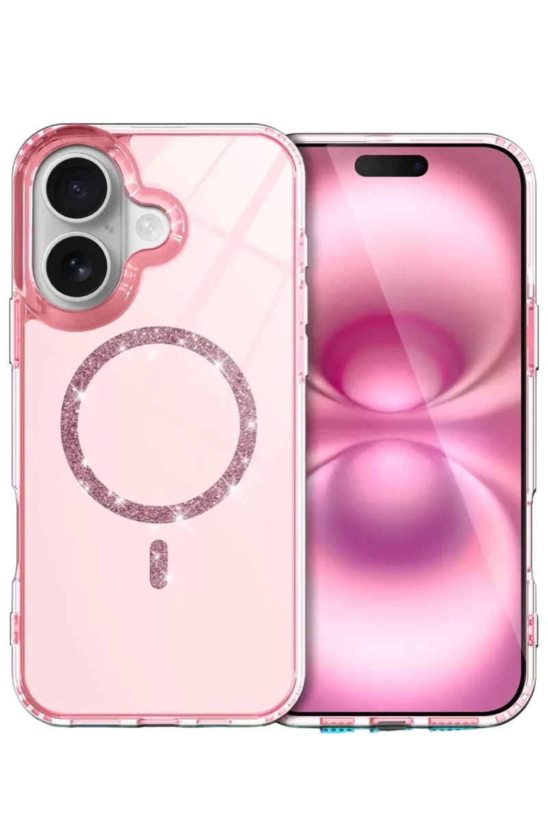 Newface Apple iPhone 16 Plus Live Diamond Magsafe Kapak - Pembe
