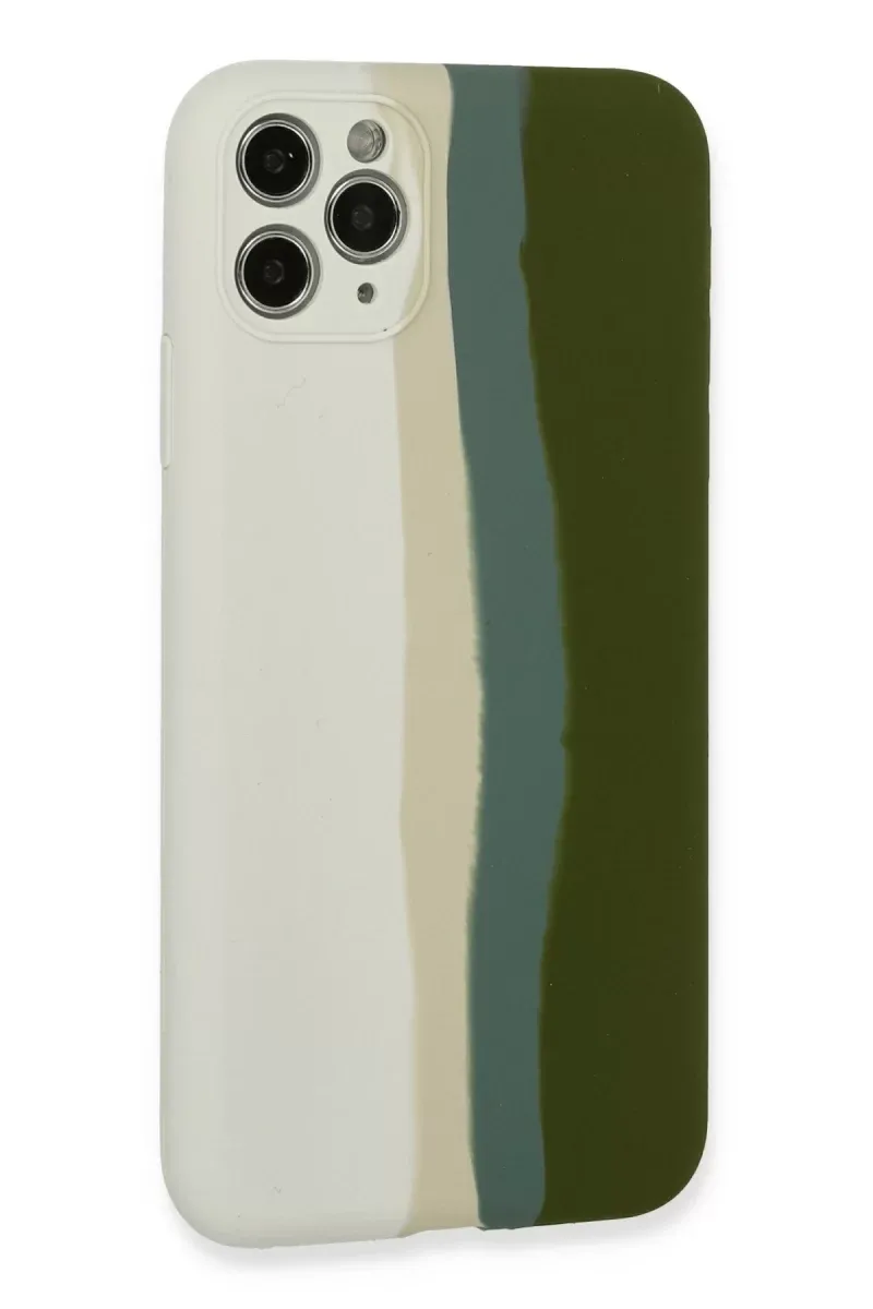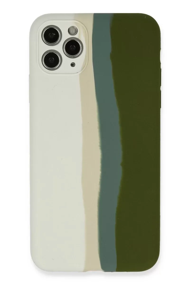 Newface iPhone 11 Pro Kılıf Ebruli Lansman Silikon - Beyaz-Yeşil