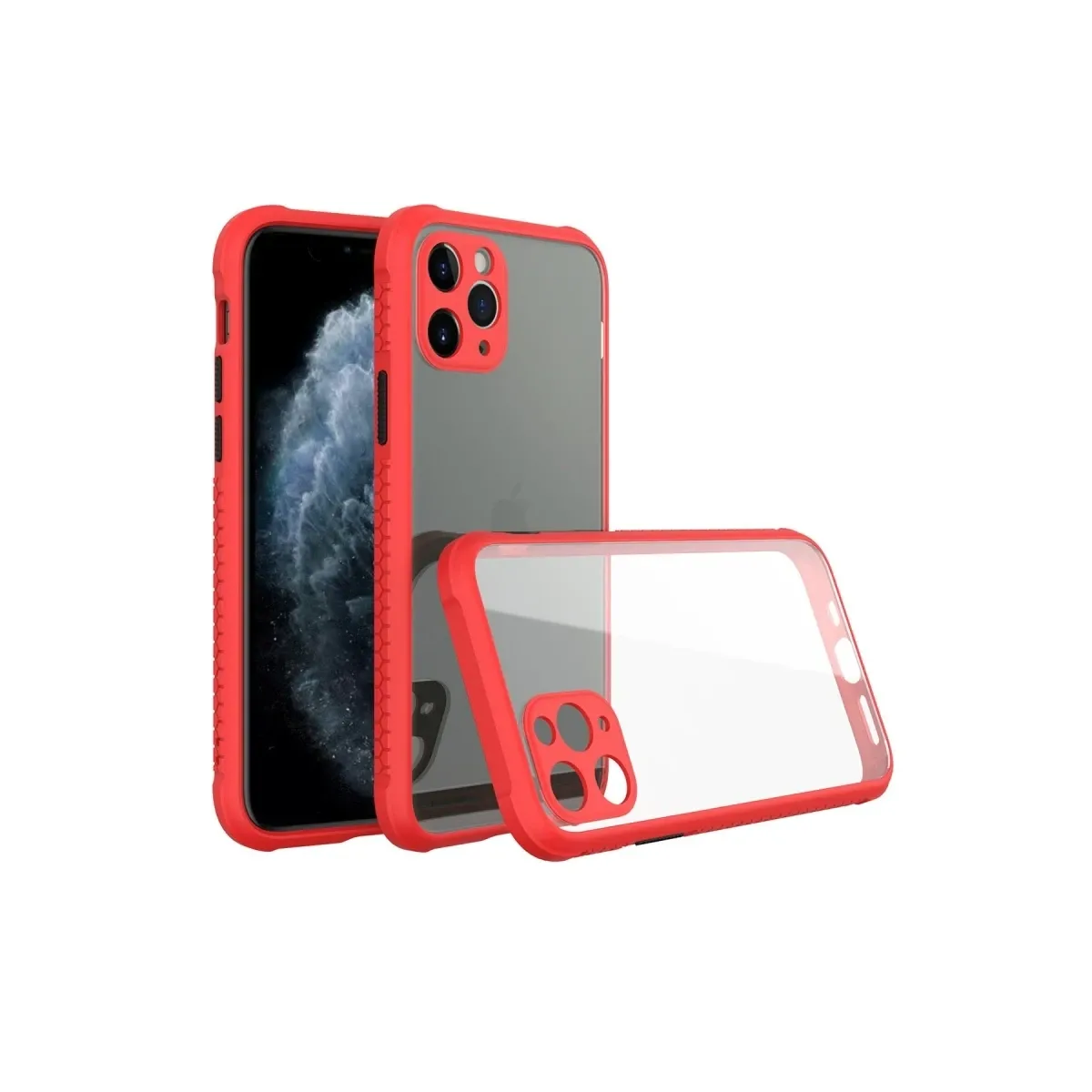 Newface iPhone 11 Pro Max Kılıf Miami Şeffaf Silikon - Kırmızı