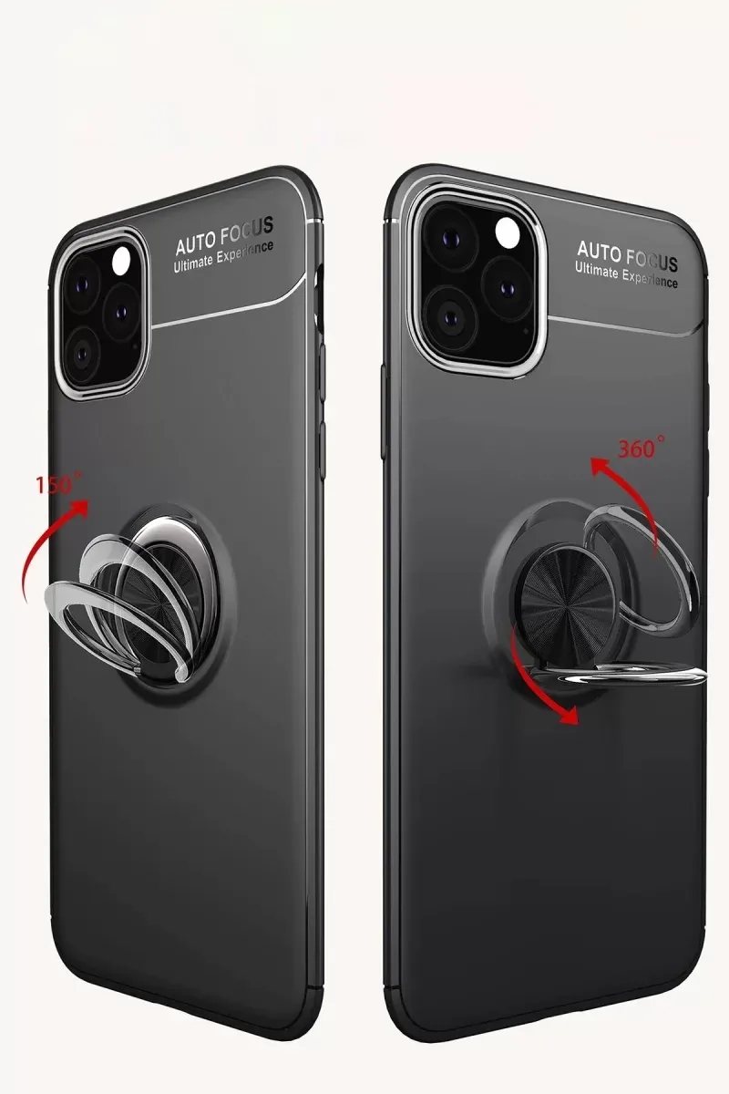 Newface iPhone 11 Pro Max Kılıf Range Yüzüklü Silikon - Siyah