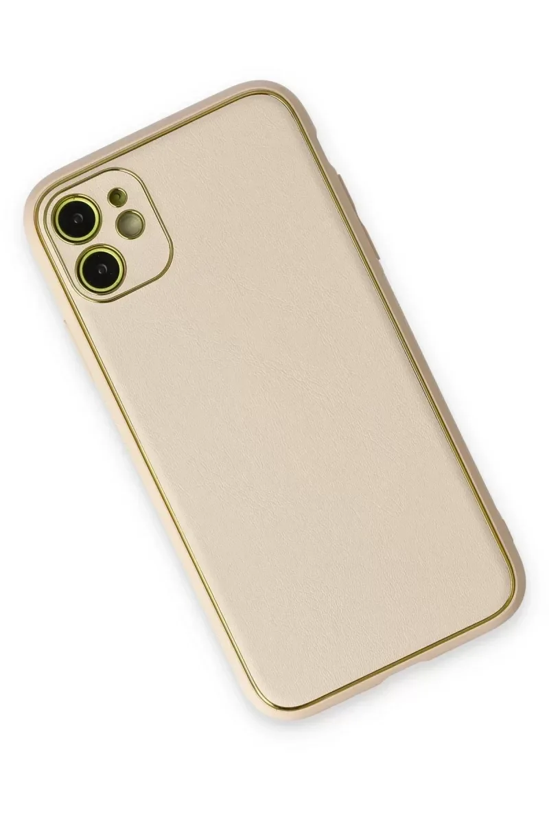 Newface iPhone 12 Kılıf Coco Deri Silikon Kapak - Gold